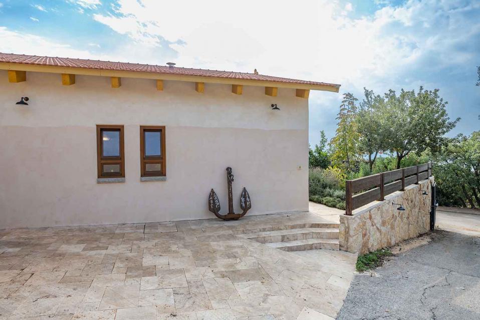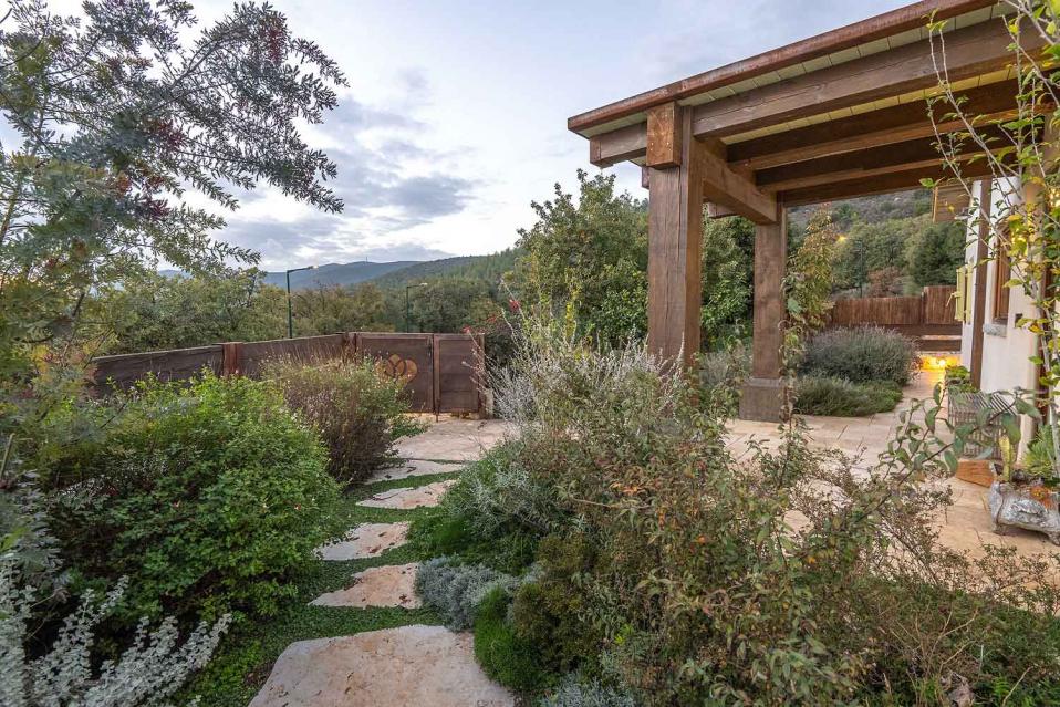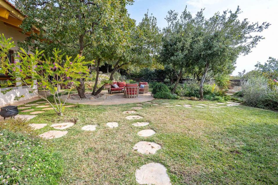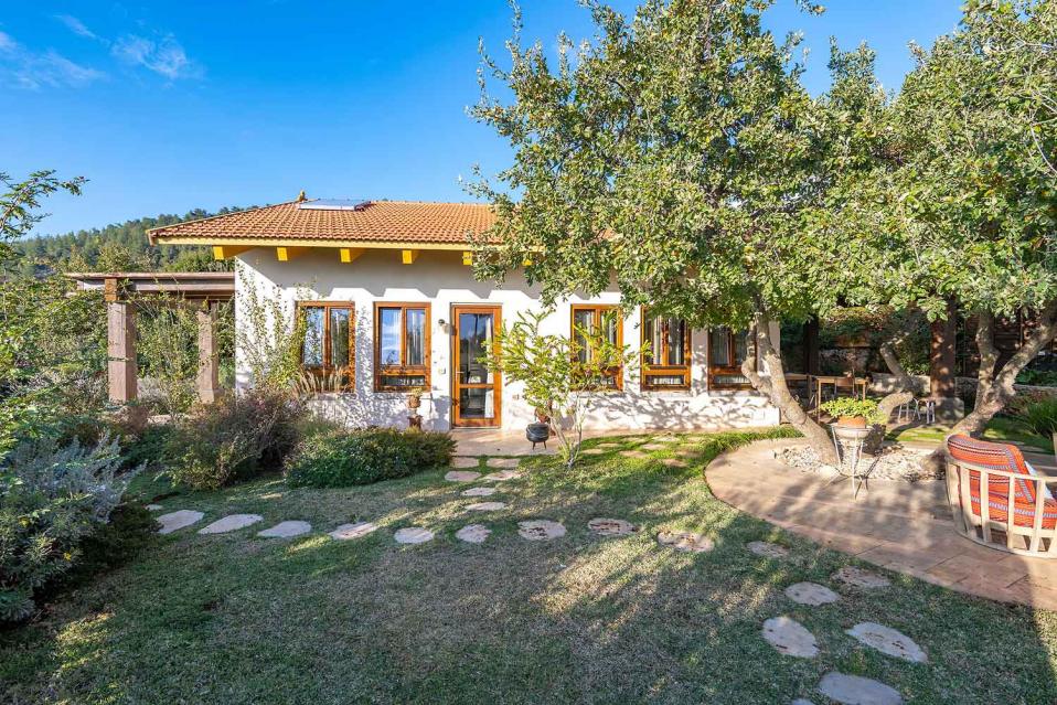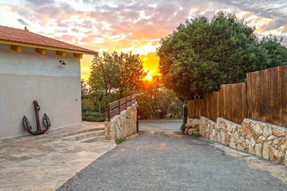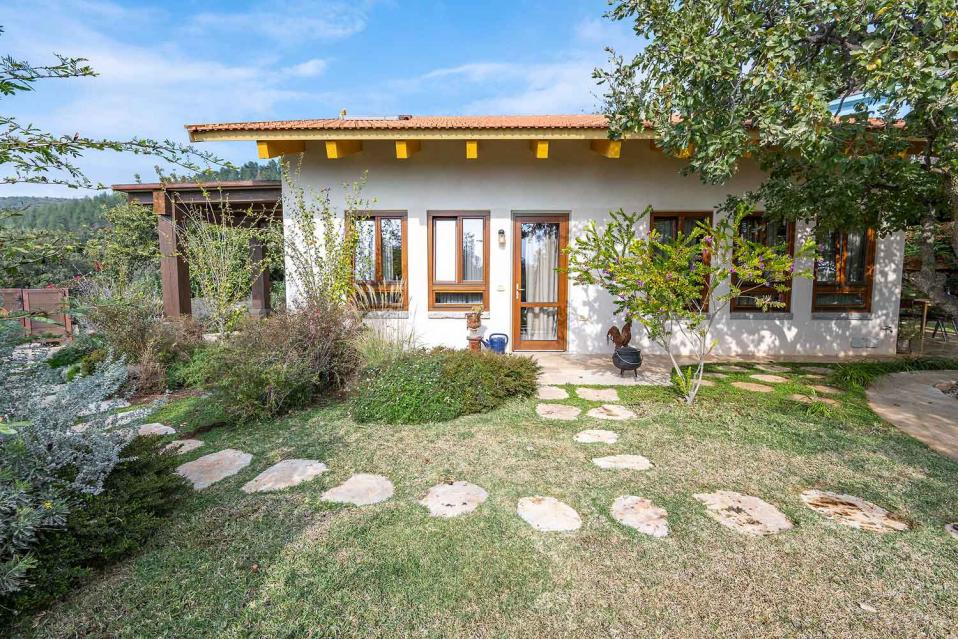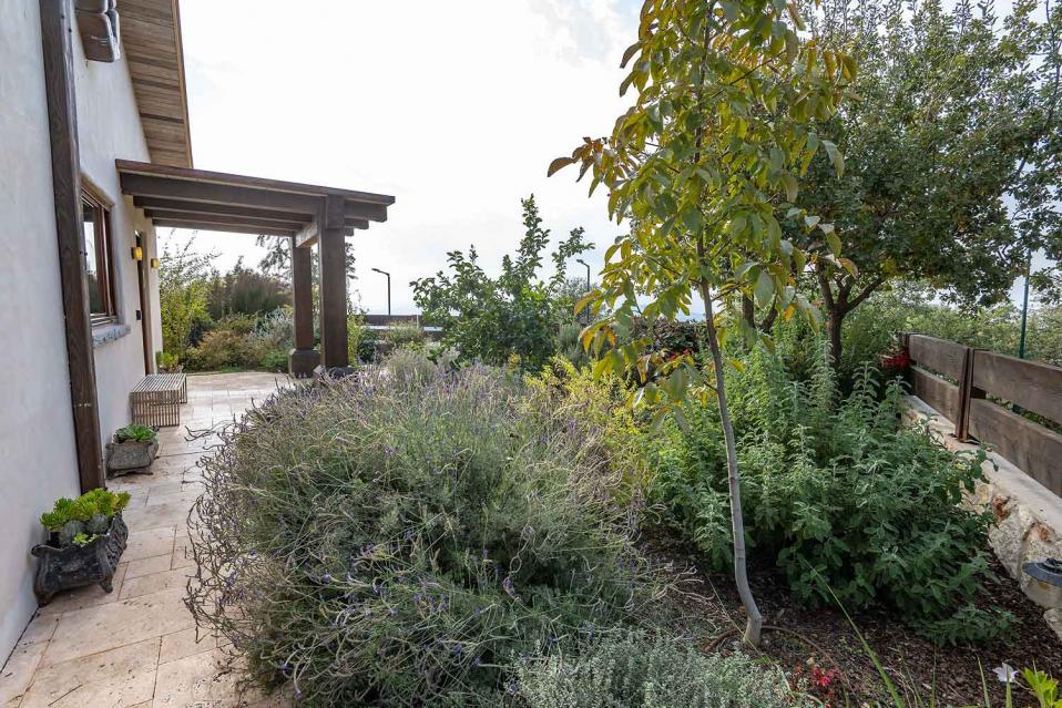 מתחם החוץ גדול במיוחד, מטופח ומלא טבע, עם פרטיות מוחלטת ונוף גלילי פתוח.