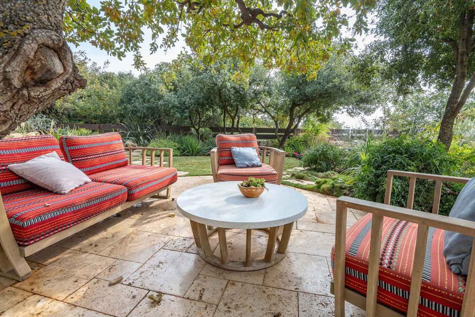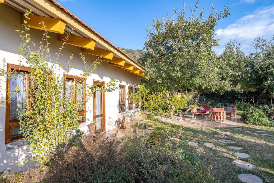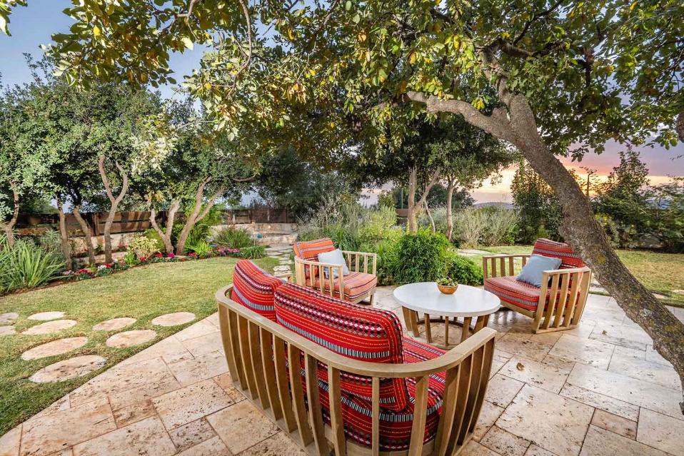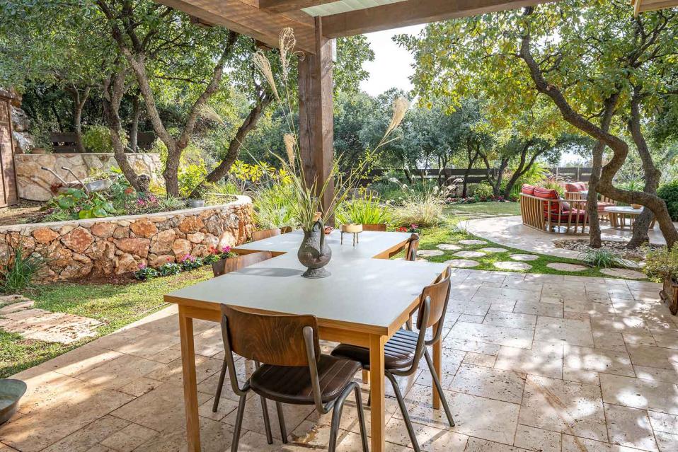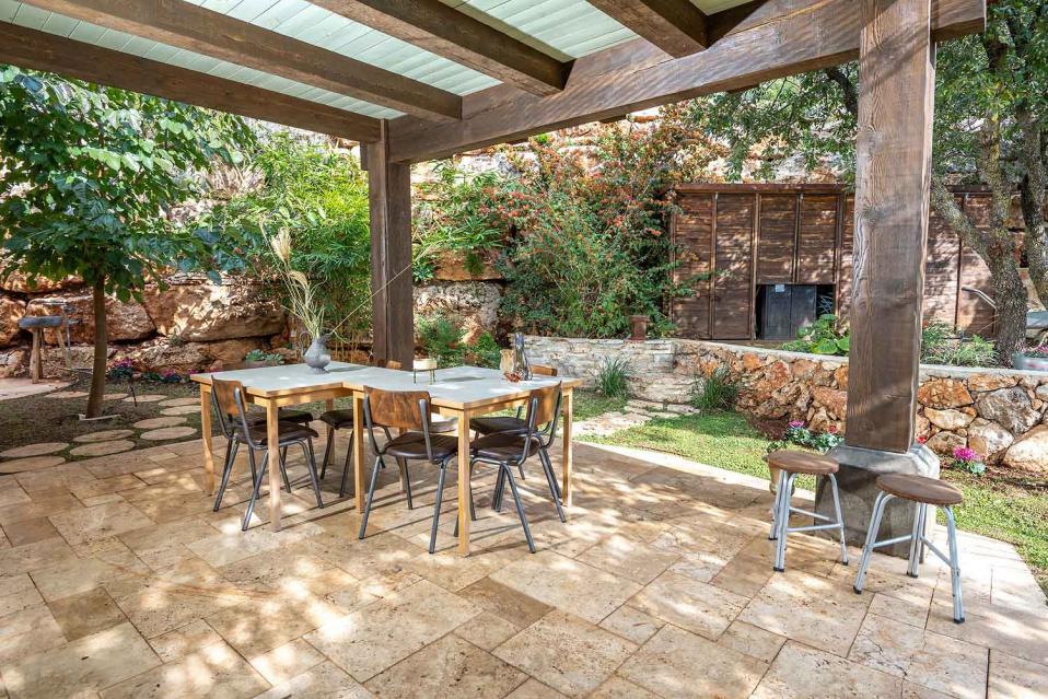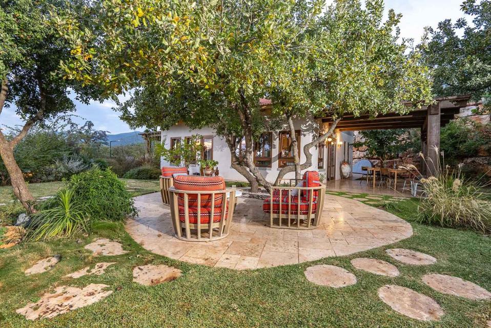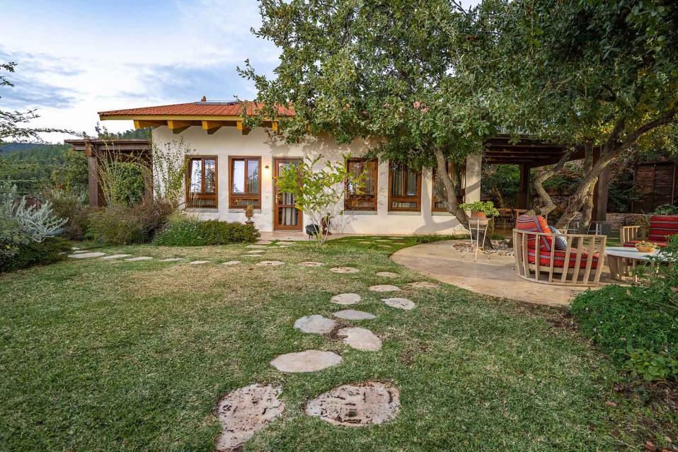 מתחם החוץ גדול במיוחד, מטופח ומלא טבע, עם פרטיות מוחלטת ונוף גלילי פתוח.