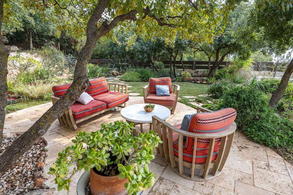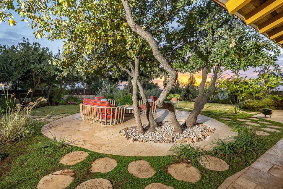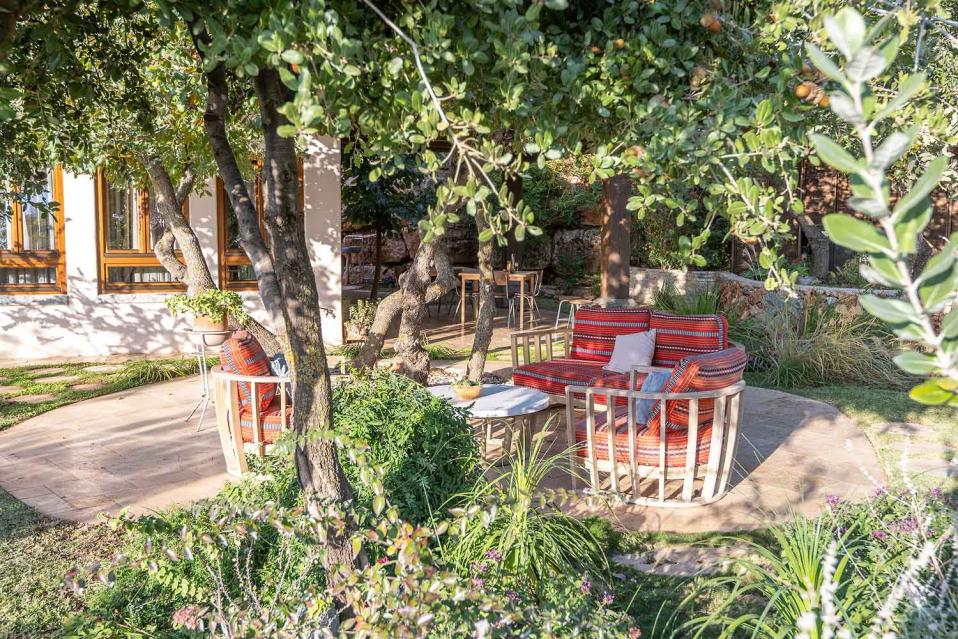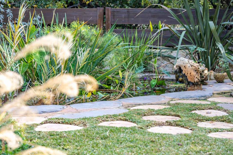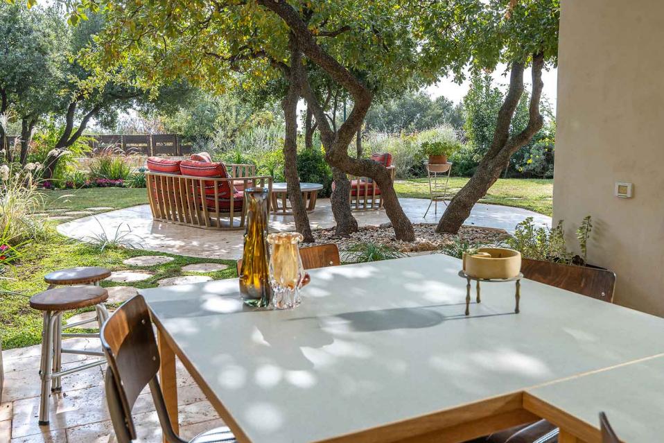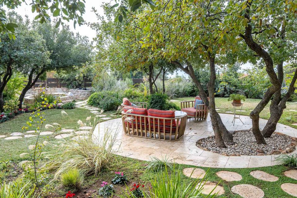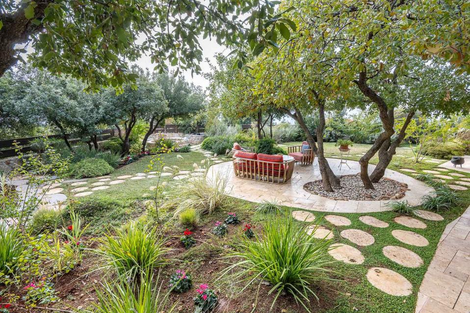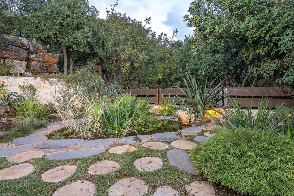 בנוסף תמצאו דשא אמיתי, עצי נוי, בריכת נוי לדגים, פינות ישיבה, שולחן אירוח חיצוני וסלון אירוח חיצוני — חוויה רגועה שמרגישה המון טבע וחופש.