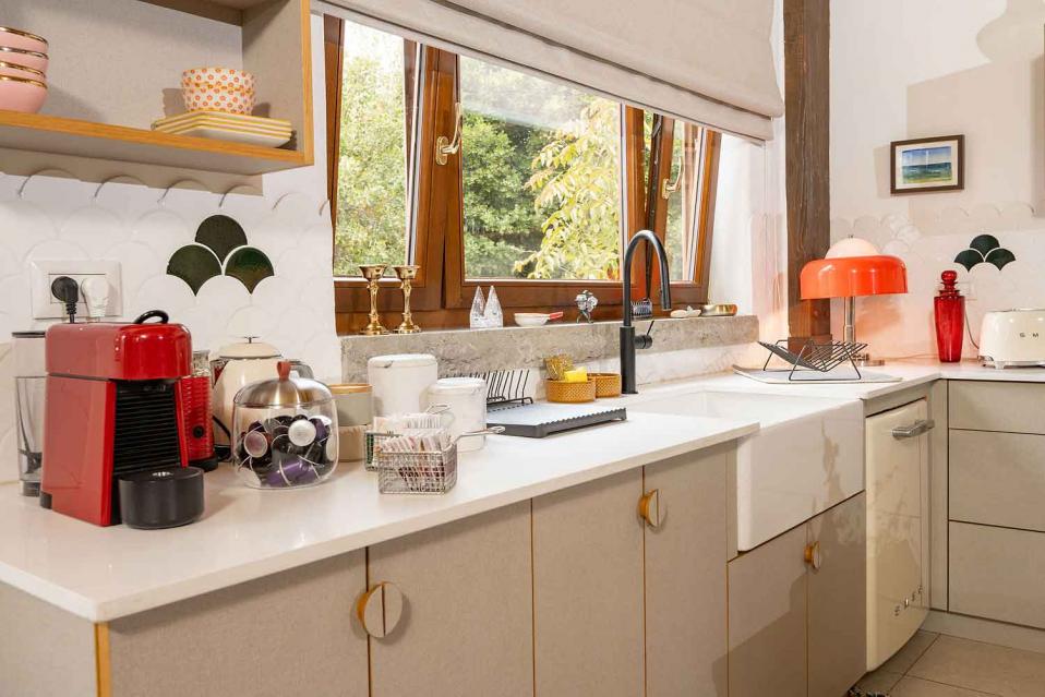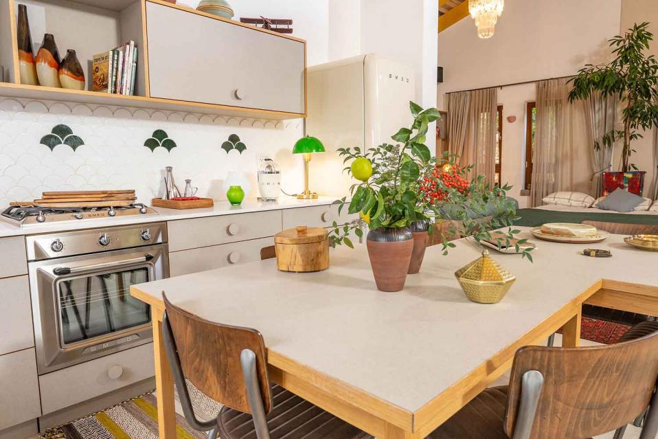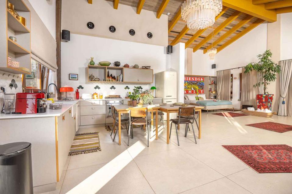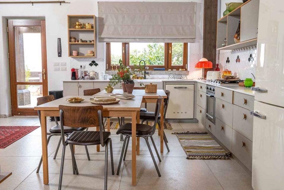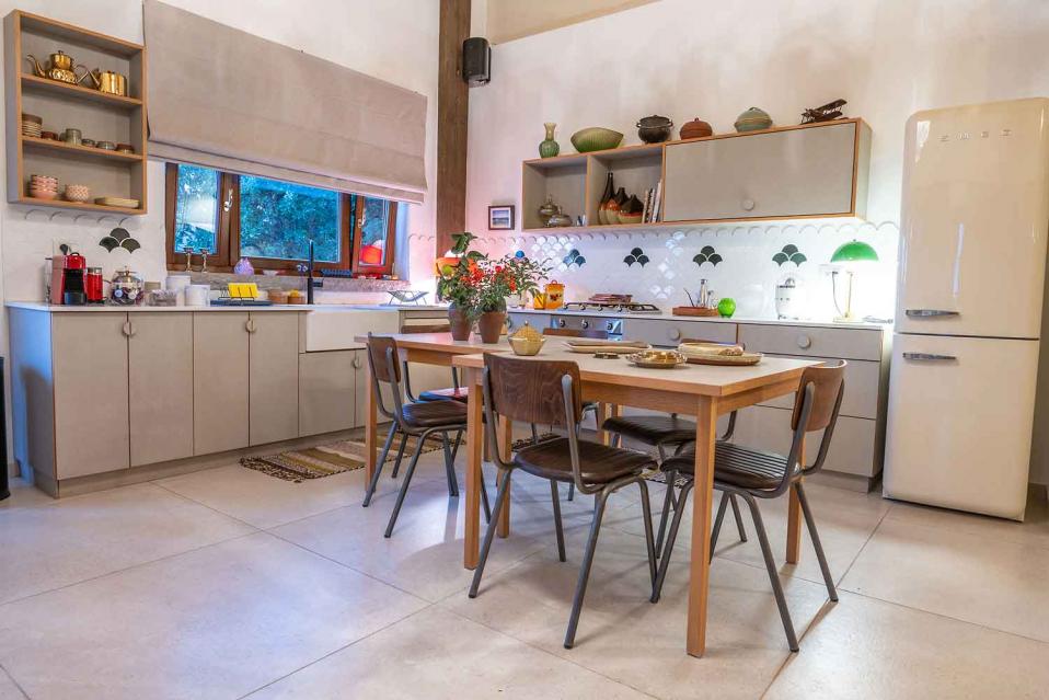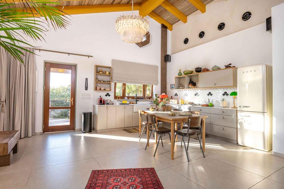 המטבח באזמרה אמירים גדול ומרווח, ומתאים לבישול אמיתי ולארוחות משותפות. הציוד במטבח ממותג SMEG, כלי האוכל יוקרתיים, והחוויה מרגישה מפנקת ומוכנה לאירוח.