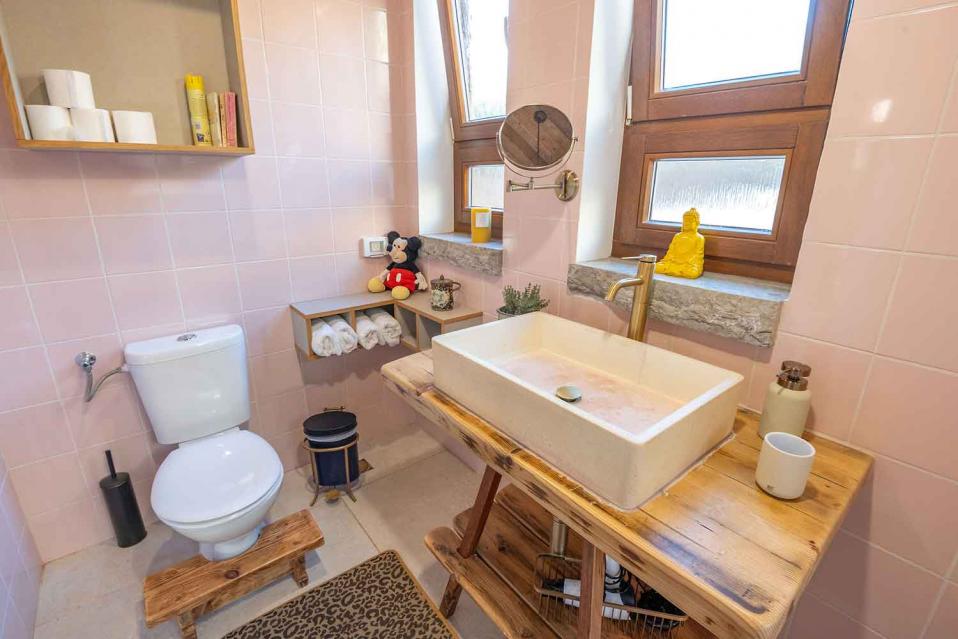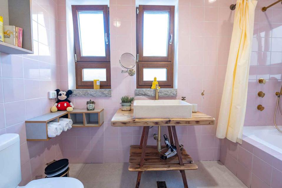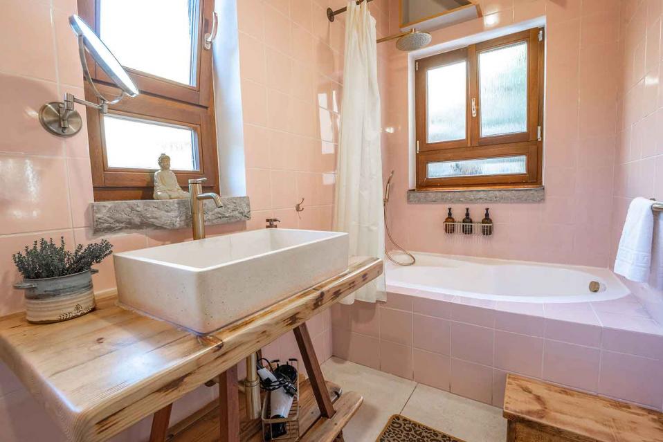 חדר הרחצה הצמוד מאובזר ברמה גבוהה וכולל אמבטיה, מוצרי טיפוח, וגם חלוקים. בנוסף קיימים מכונת כביסה ומייבש לשימוש האורחים.