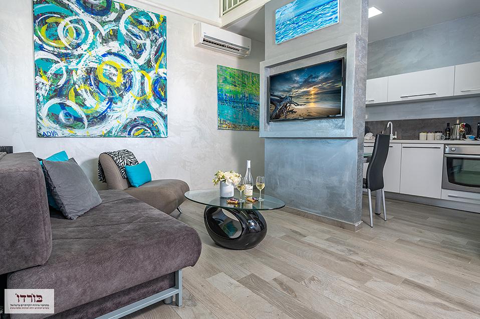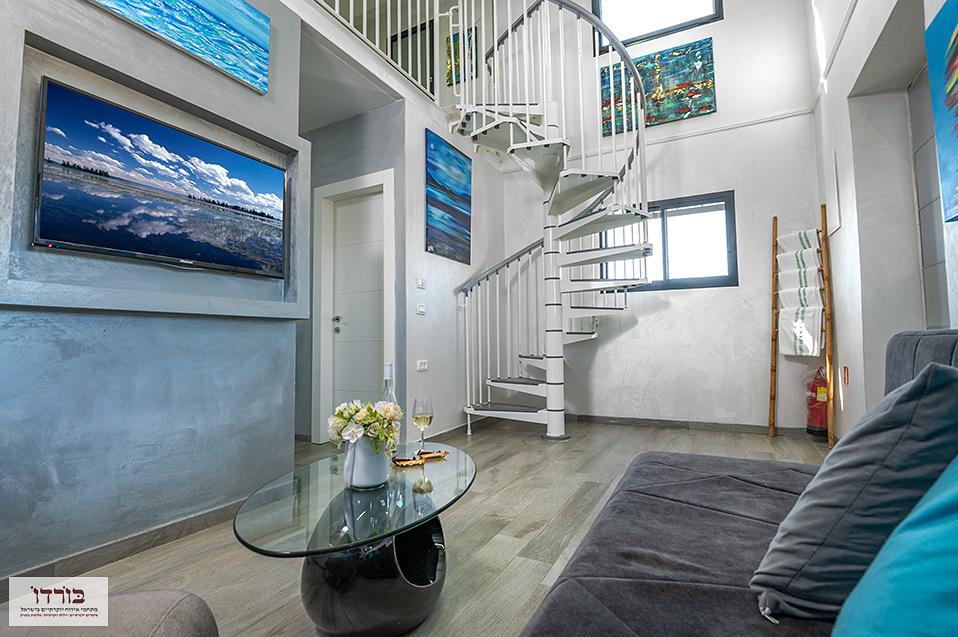 הכניסה אל הסוויטה היא חוויה בפני עצמה: הקו הנקי והמוקפד המאפיין את המתחם החיצוני הופך כאן לעיצוב אלגנטי, הרמוני ומקסים היוצר אווירה מיוחדת, תחושה מיידית של נופש וניתוק. החל באדריכלות המרשימה והתקרה הגבוהה, המשך בחלוקה הנהדרת של החלל הנדיב, הפרטיות שמציעה הקומה השנייה ובה חדר השינה והרחצה - ופריטי האמנות המושכים את העין ומעשירים את החוויה. הריהוט נהדר, המיטה מפתה, חדר הרחצה המעוצב מפנק במיוחד וכולל מקלחון ראש גשם מעוצב, המטבח מאובזר בנדיבות (כולל טוסטר מדליק), בכל קומה יש מסך שמציע שלל תכנים - זהו אירוח בסטנדרט גבוה והשקעה רבה, תשומת הלב ניכרת מאוד וכך גם הכישרון שיצר סוויטה יוקרתית מפנקת במיוחד בכל אספקט.