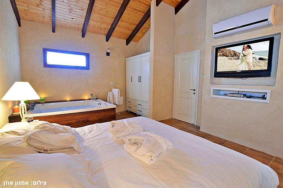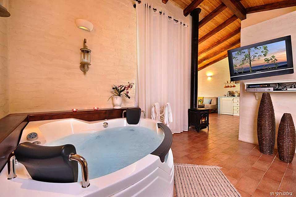 כל אחת מן הסוויטות מאובזרת להפליא ומצוידת בטלוויזיית L.C.D   גדולה ובמערכת קולנוע ביתית, במיטה רחבת ידיים ומרשימה, קמין לחורף ובג'קוזי רומנטי גדול. בסוויטה פינת ישיבה גדולה ומזמינה, מטבח מאובזר ומעוצב להפליא, חדר רחצה המעלה חיוך בשל העיצוב המלבב שלו ועוד פינוקים שונים מן המארחים הנדיבים, הכוללים בקבוק יין משובח, פירות יבשים, שוקולד ופירות העונה.