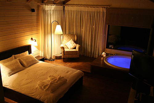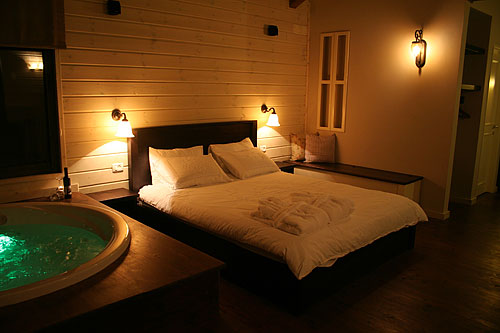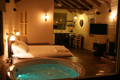 הבקתות עשויות קורות עץ בהירות, ועיצובן הפנימי משלב נגיעות רבות של סגנון עתיק, יחד עם השקעה ניכרת ביצירת האווירה הרומנטית השורה בהן. תאורה חמה ונמוכה, ריהוט עתיק ומסוגנן, חפצי נוי דקורטיביים וקמין בוער הם רק חלק מהמרכיבים היוצרים את האווירה והקסם.