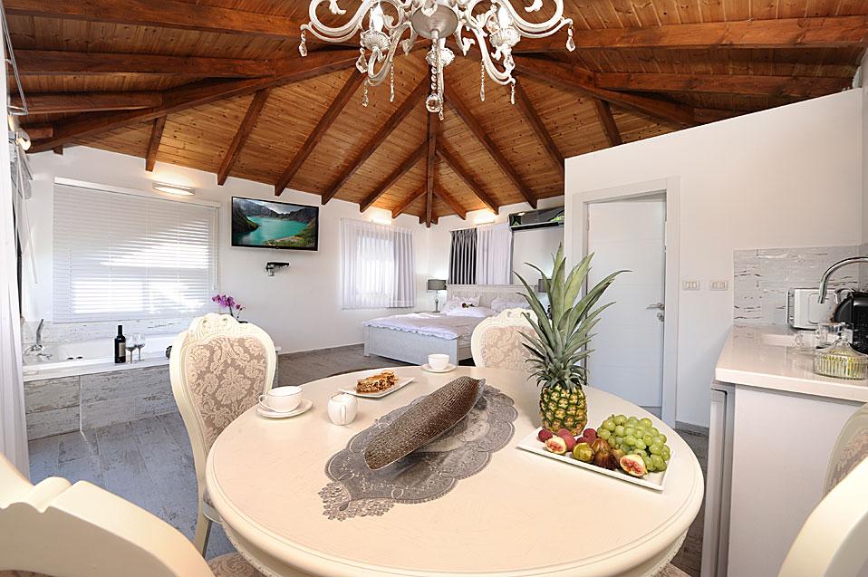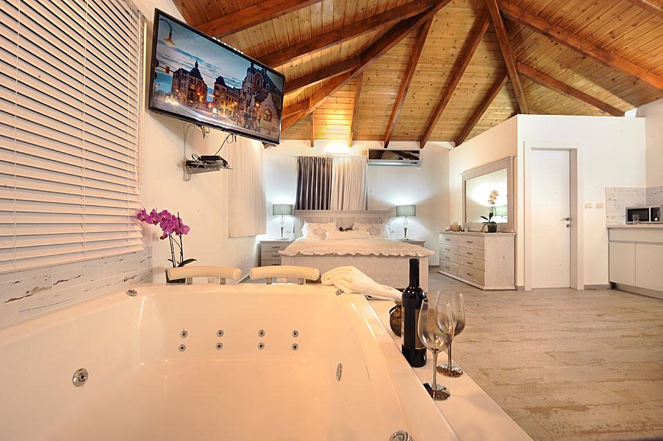 <p>חלל סוויטה גדול מואר ומרווח- ג'קוזי פרטי זוגי- בסוויטות רומנטיות -סוויטת אדל</p>