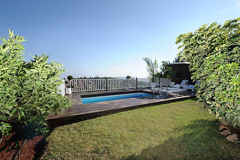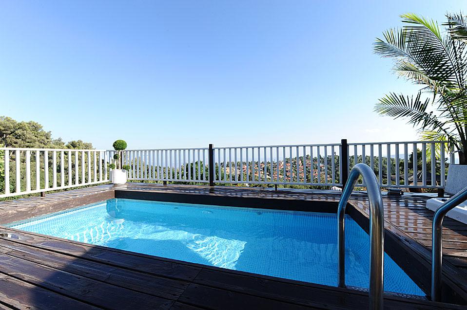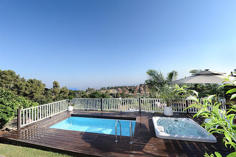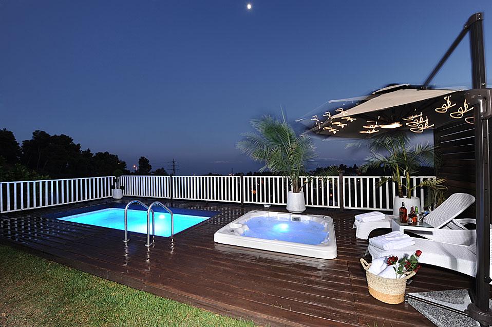 <p>מרפסת דק רחבה, פרטית, עם- בריכת שחיה מחוממת וג'קוזי ספא בסוויטת אלין</p>