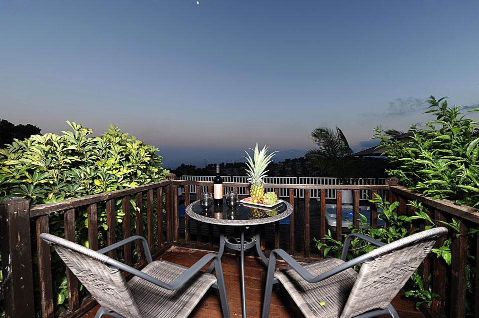 לכל סוויטה – מרפסת כניסה עם פינת ישיבה, ובמת דק הצופה אל נוף פנורמי של הכנרת והרי הגליל, עליה ממוקמת בריכת שחיה מחוממת תחת כיפת השמים ולצידה - ג'קוזי ספא ענק, השקוע בבמת העץ ופינת אירוח מעוצבת. בסמוך לכניסה אל הסוויטה ניצבת פרגולה מקורה עם פינת האוכל. המתחם מכיל גם שטח טבעי עם גינה, מדשאה, פינות ישיבה מעוצבות ועמדת בר-בי-קיו בנויה.