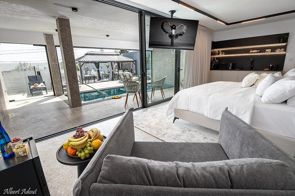 עיצוב אלגנטי ומושקע הניכר מכל פינה בסוויטה ובחוץ, מטבחי חוץ משוכללים ומתחם מרווח
