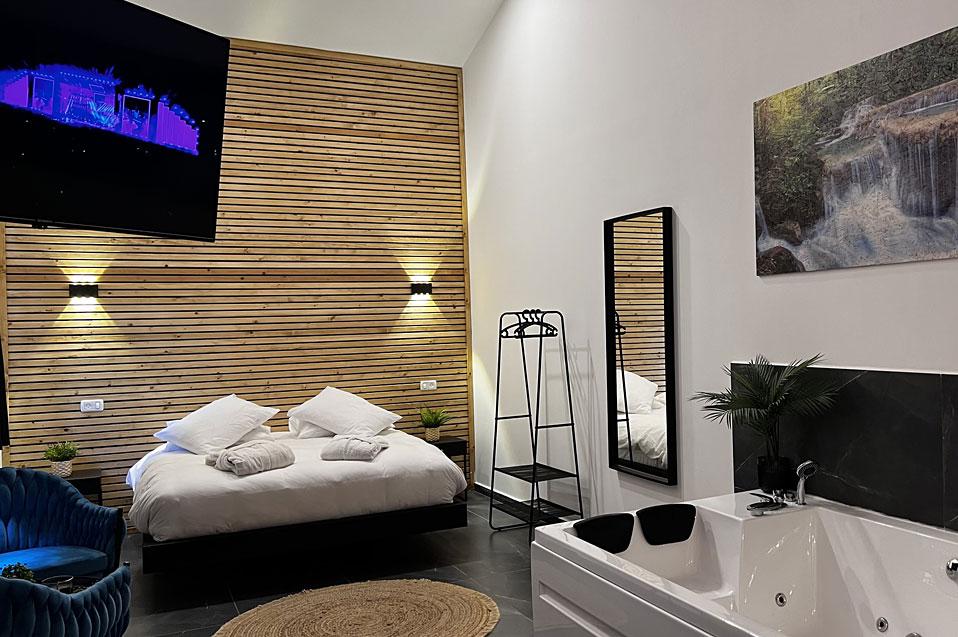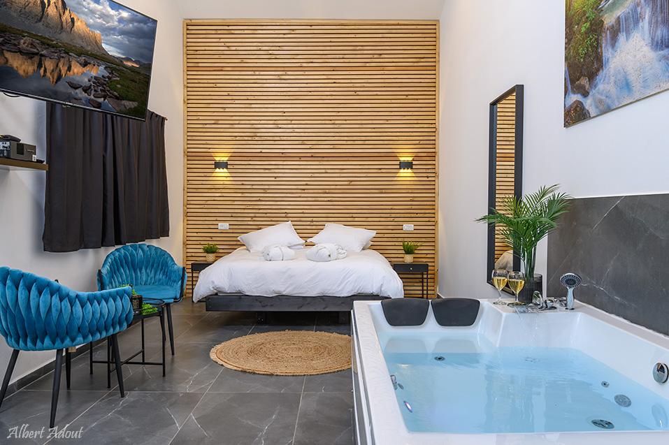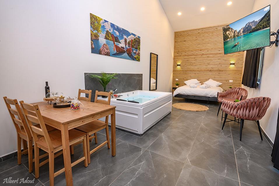 הכניסה לסוויטה המעוצבת של בלסינג חושפת בפנינו חדר נעים שמתחיל במטבח מצויד וחדר רחצה יוקרתי ועמוס תפנוקים, ממשיך למיטה זוגית נהדרת במיקום מושלם ובסמוך אליה ג'קוזי ג'טים זוגי. האווירה נהדרת והכל מרגיש נעים ומזמין. הצימר ממשיך אל פינת אוכל ופינת ישיבה - שתיהן נוחות ומצוינות. העיצוב מתחרה בניקיון - הכל כאן מעוצב במחשבה והשקעה רבה והכל כאן נוצץ ומבהיק מניקיון - התרשמנו עמוקות.