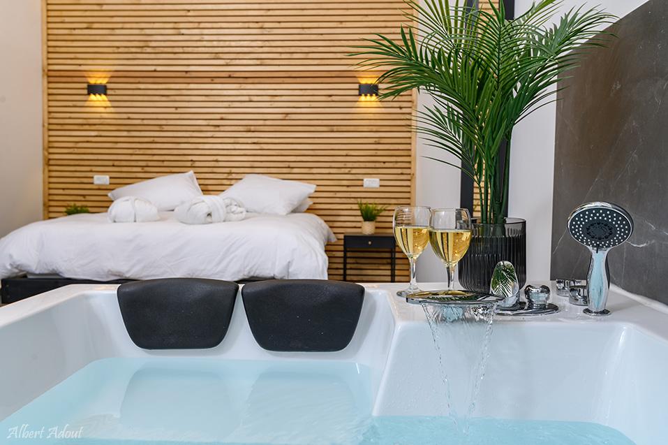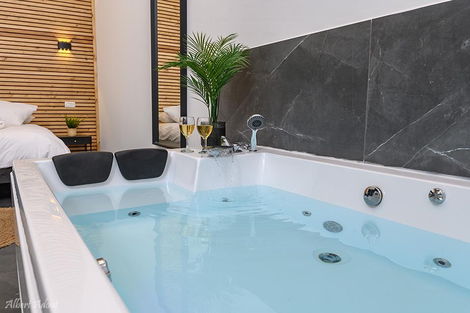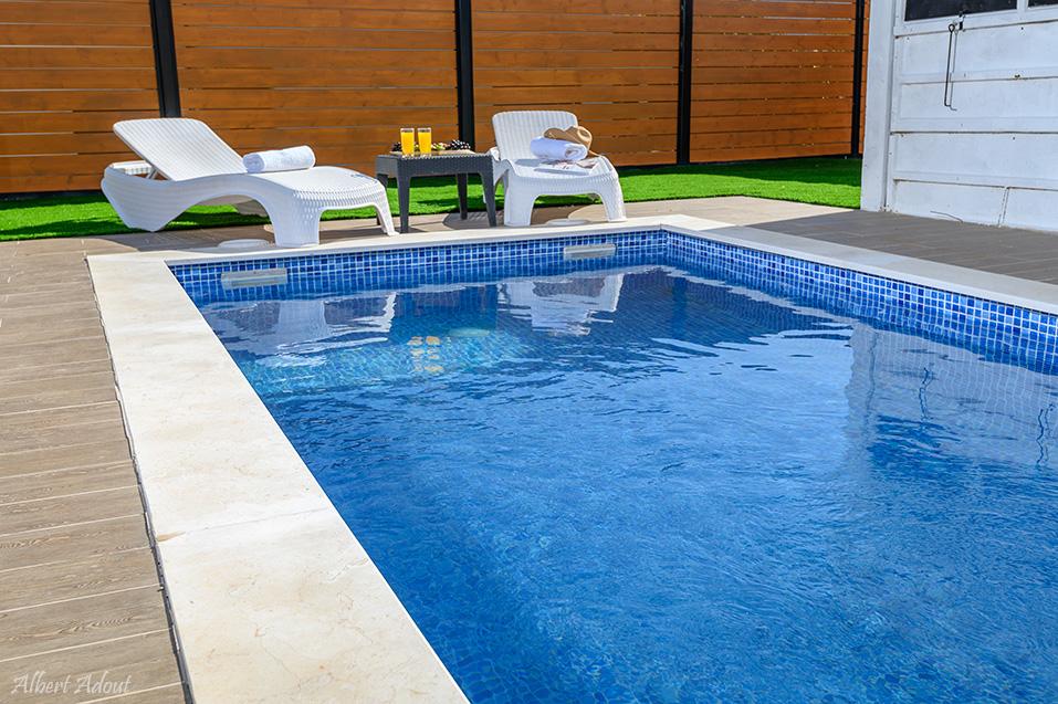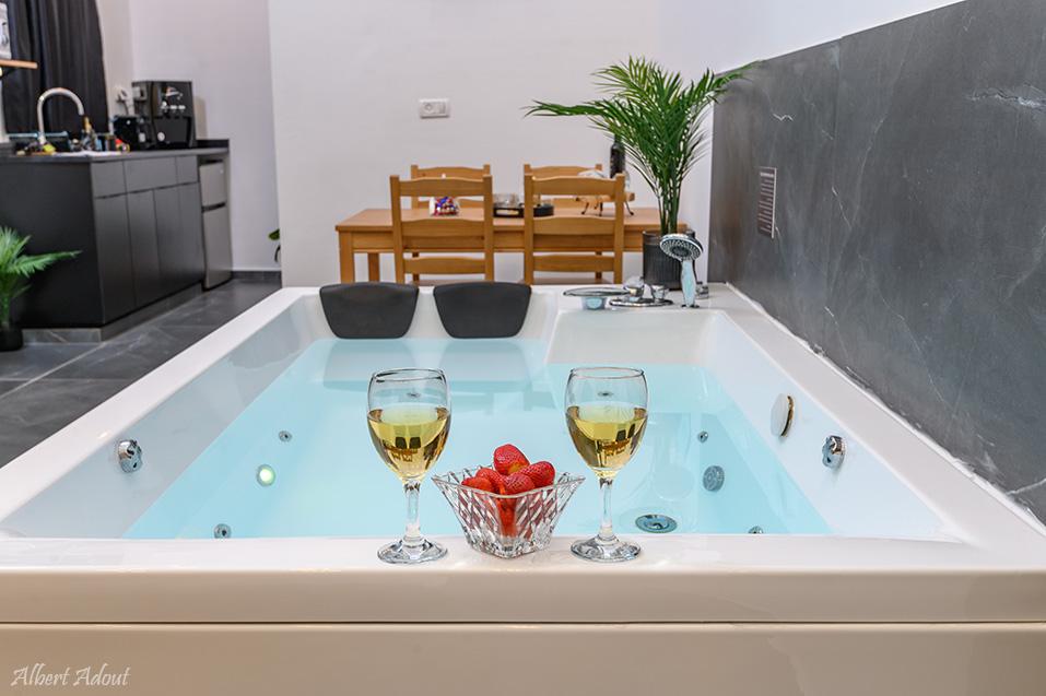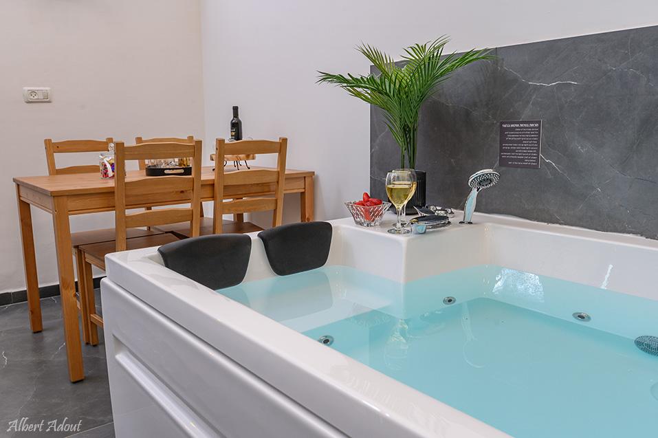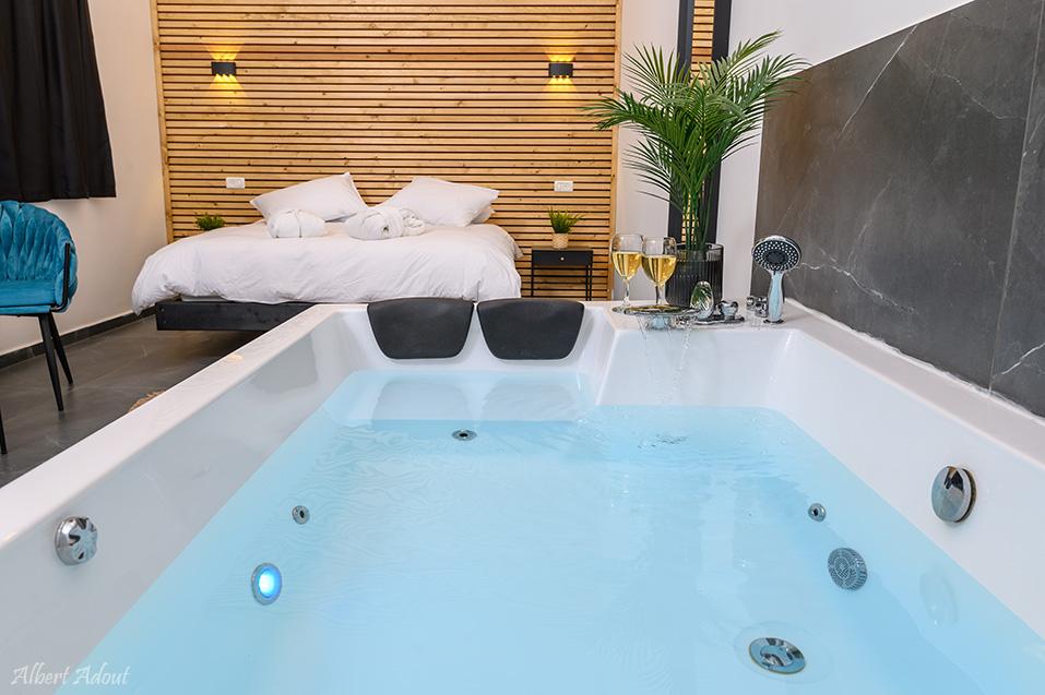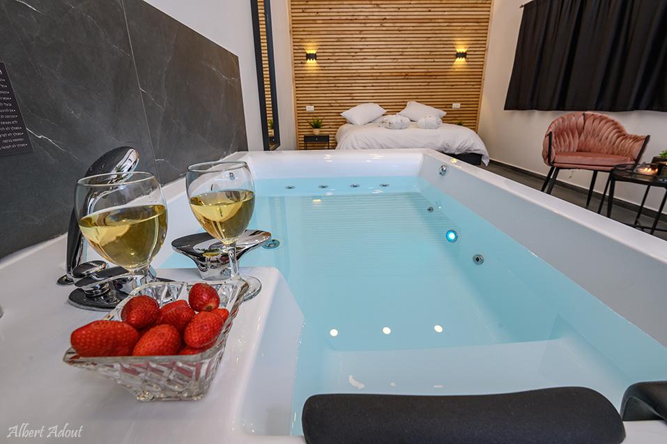מהג'קוזי הפנימי למרפסת הדק אל הבריכה הפרטית של הסוויטה