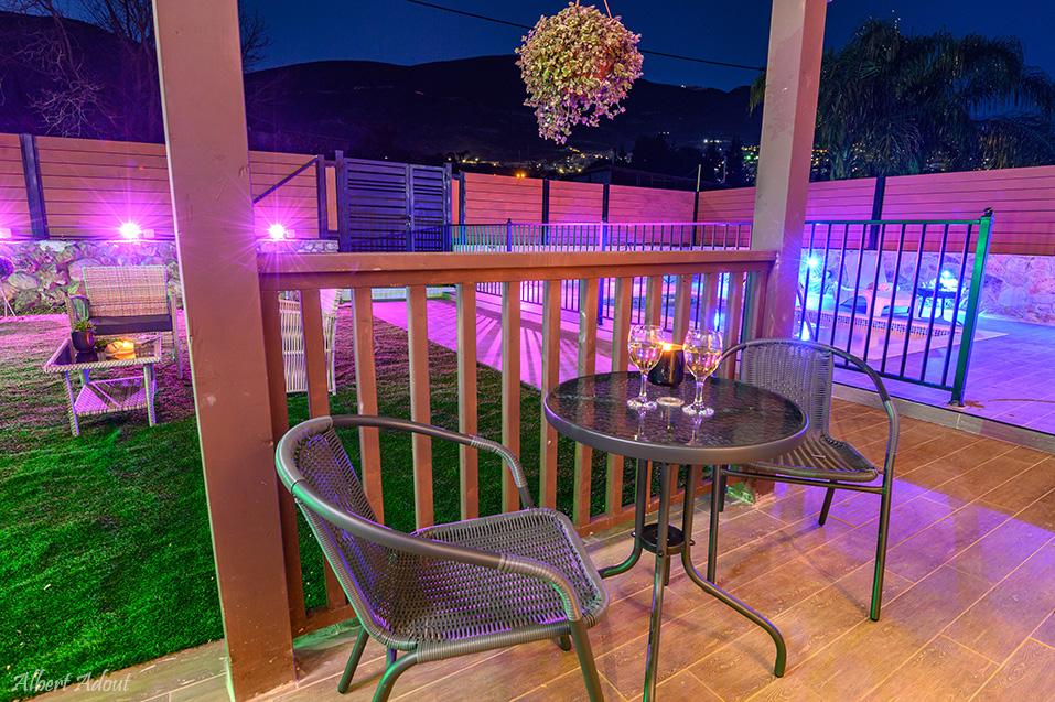 בבלסינג ישנן שתי סוויטות נפרדות לחלוטין עם גינה מרווחת, מרפסת דק עם פינת ישיבה מקורה ובריכה מגניבה עם תאורה ייחודית. הפרטיות נשמרת בזכות חומת עץ ואנו מוקפים בהרי הגליל, יושבים עם כוס יין ליד הבריכה ונהנים מהרומנטיקה הזוגית. בצימר של בלסינג בשזור ערוכים לחופשה עם ילדים והבריכה היא אחת האטרקציות המובילות, בפרט בעת שחיית לילה עם התאורה המדליקה - קל לנהל כאן ילדים גם בזכות המנגל הצמוד, אך אנחנו הגענו הפעם לחוויה "לפי הספר" - חופשה זוגית בגליל באווירה הרומנטית והאינטימית של בלסינג.