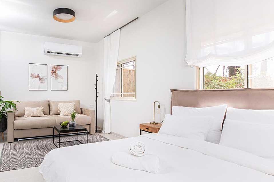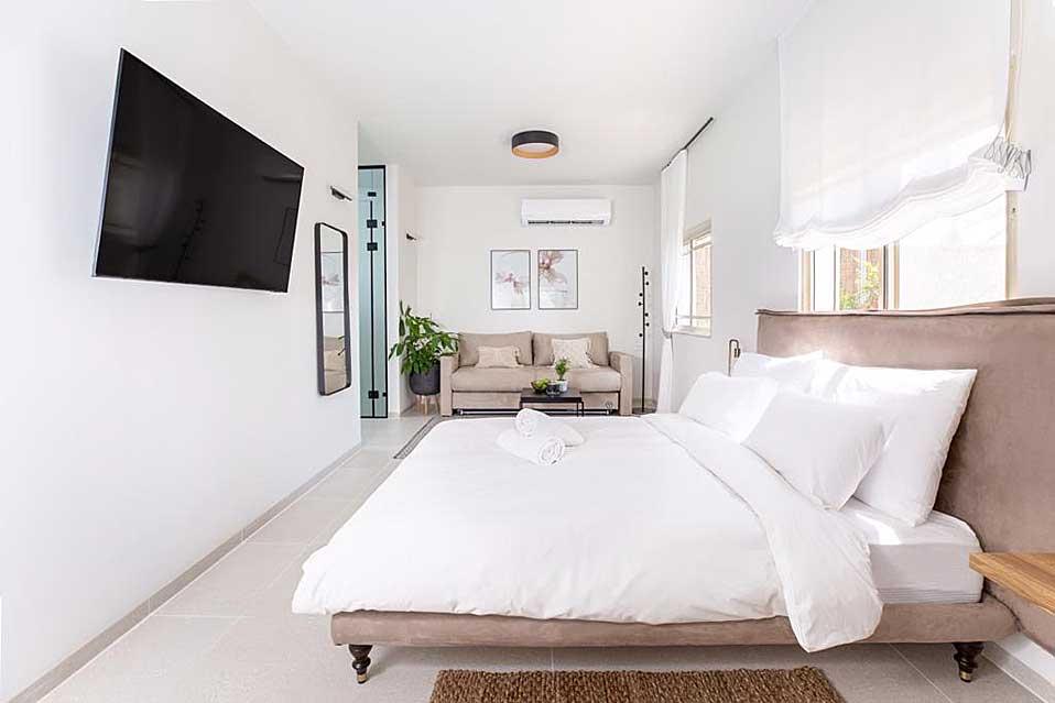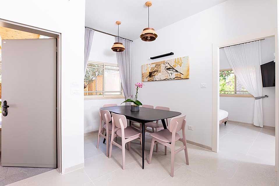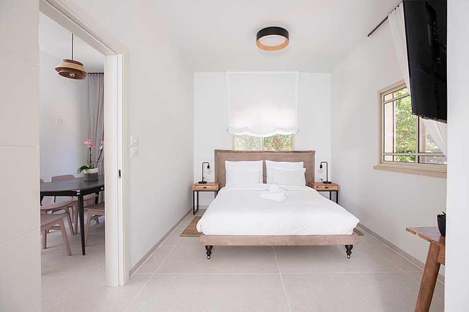 מיני וילה המחולקת לשתי סוויטות, מטבח מאובזר וחצר גדולה ונעימה עם בריכת זרמים גדולה. כל אחת מהסוויטות בגודל של כ- 25 מ"ר מכילה מיטה זוגית אורתופדית, ספה נפתחת המתאימה ללינת ילדים, מסך טלוויזיה גדול, ארון, מיזוג אוויר וחדר רחצה מעוצב.