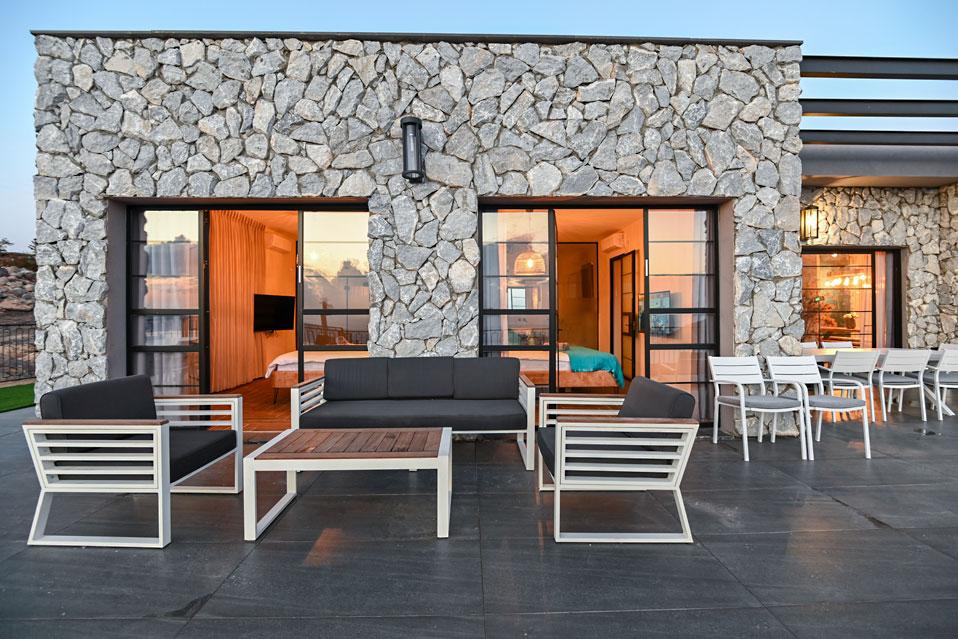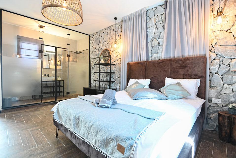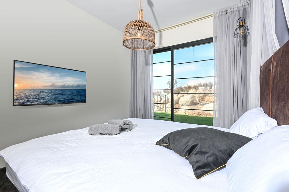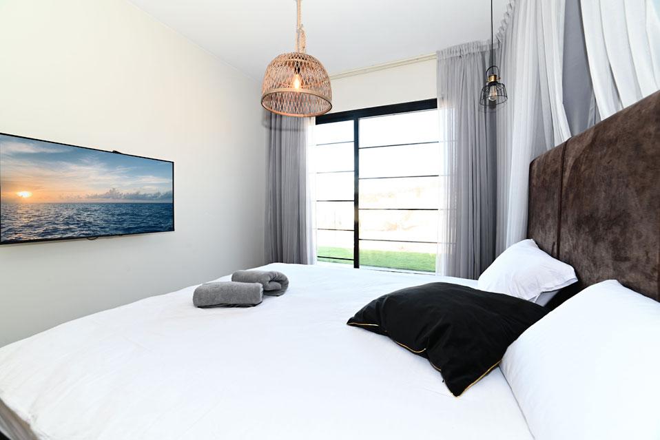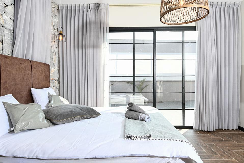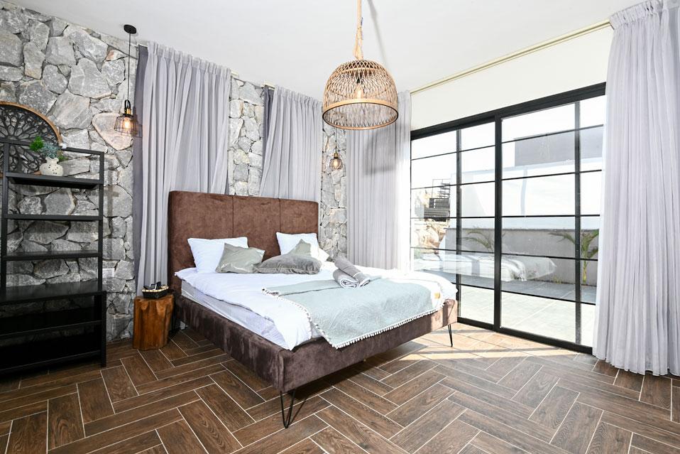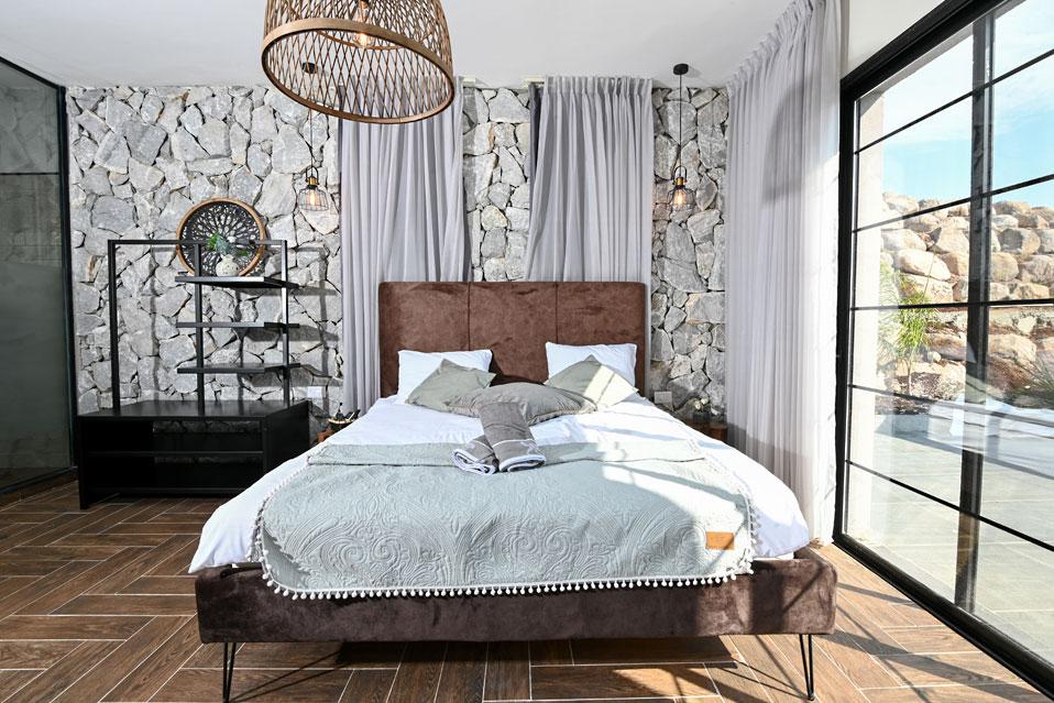 בכל וילה תמצאו 5 חדרי שינה מעוצבים ומרווחים, צמודי חדר רחצה, סלון אירוח גדול היוצא למרפסת נוף ולשקיעות עוצרות נשימה, מאובזר בספה יוקרתית, כורסאות נינוחות ומול מסך טלוויזיה חכמה. המטבח אינטגרלי ויש בו את כל מה שצריך כדי לתפור חופשה מושלמת בלי לצאת לשום מקום, שולחן אבירים ענק ושלל פרטי דקורציה ובעיצוב ייחודי מעטרים את הווילה (הביטו על התקרה המיוחדת- בסגנון אבסטרקט).