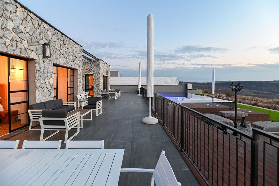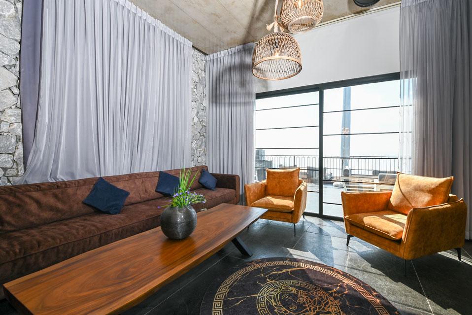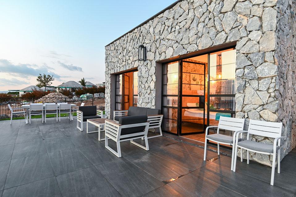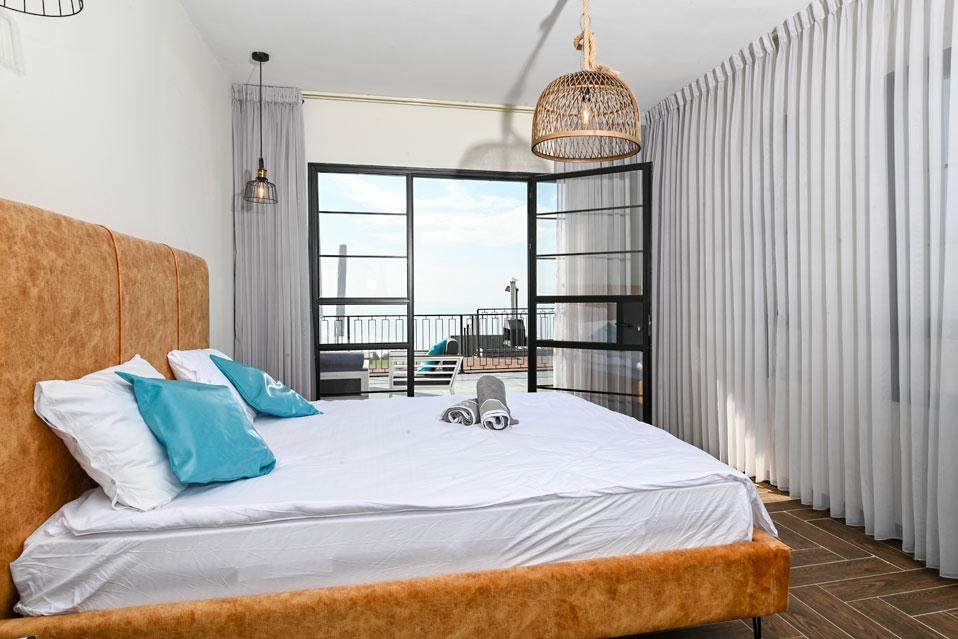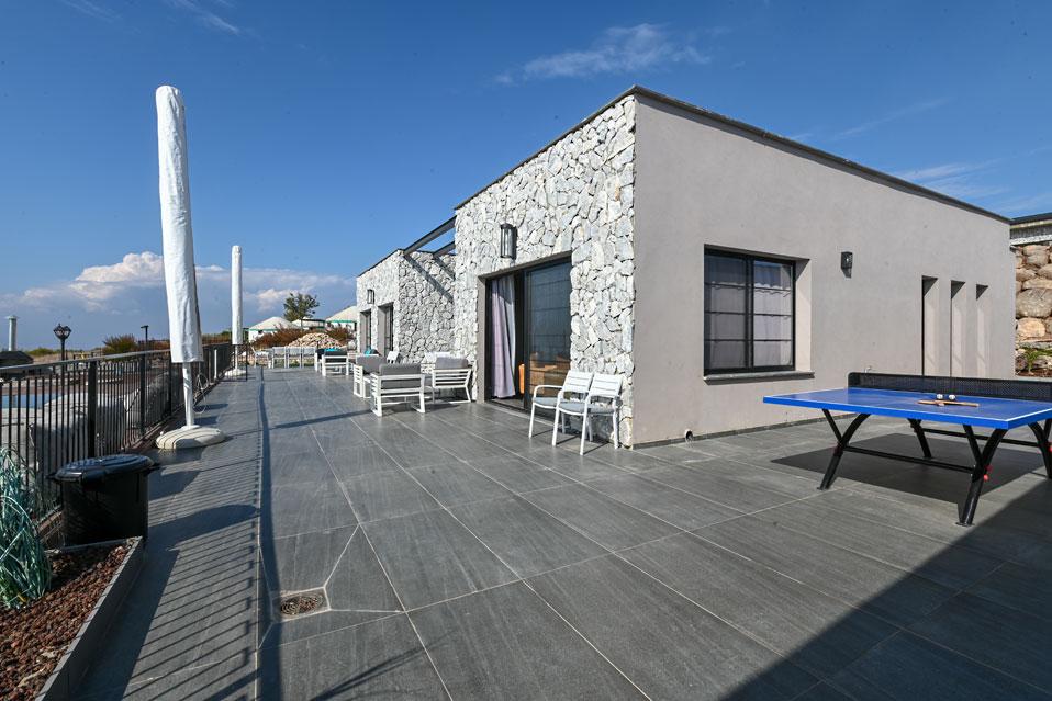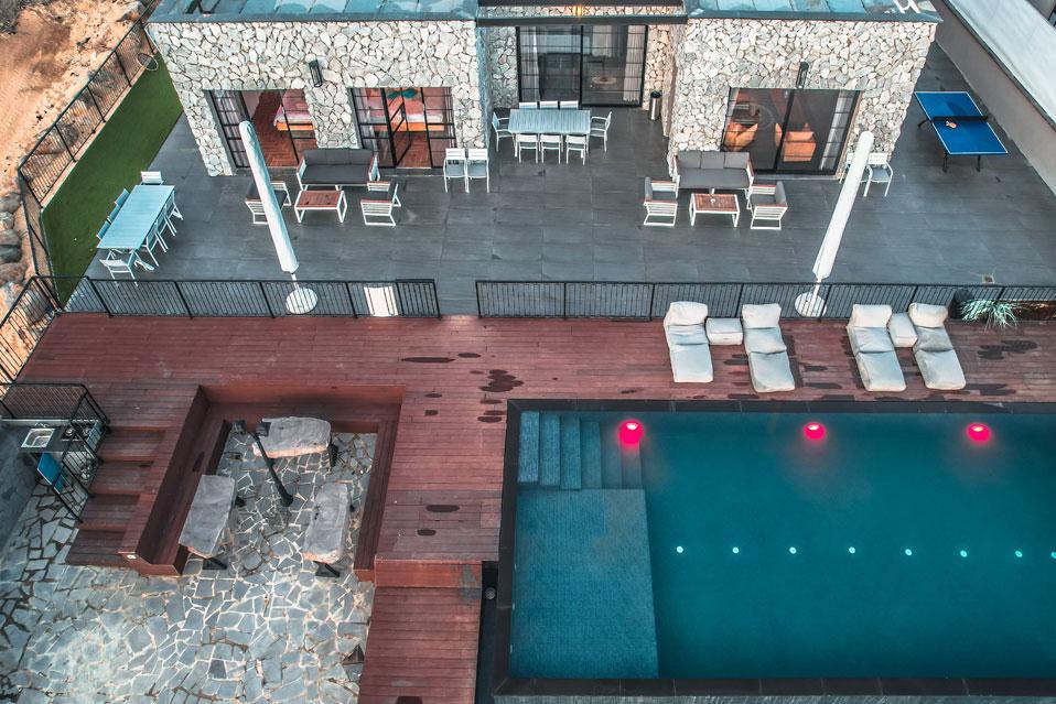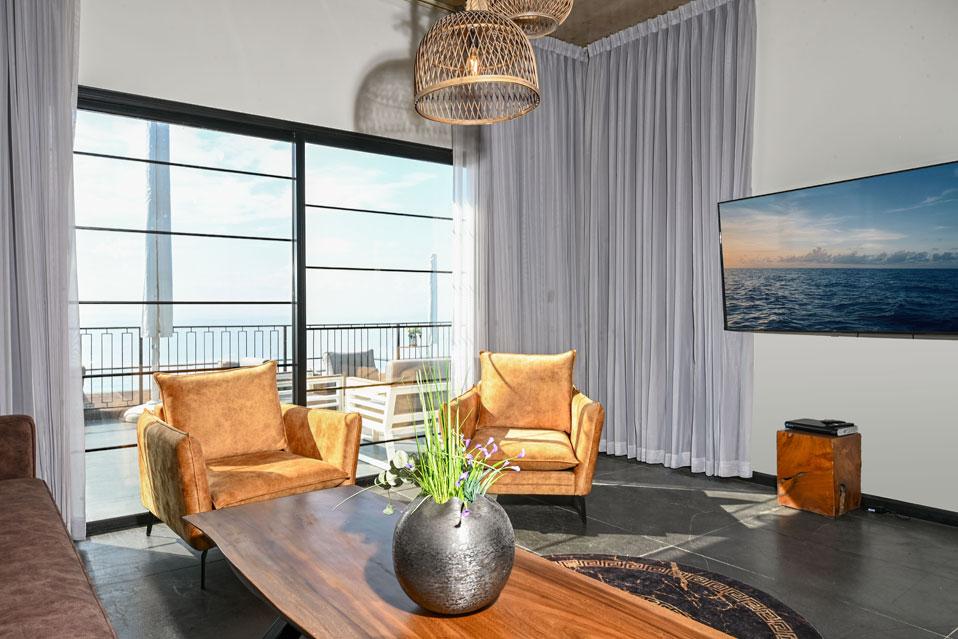 בכל וילה תמצאו 5 חדרי שינה מעוצבים ומרווחים, צמודי חדר רחצה, סלון אירוח גדול היוצא למרפסת נוף ולשקיעות עוצרות נשימה, מאובזר בספה יוקרתית, כורסאות נינוחות ומול מסך טלוויזיה חכמה. המטבח אינטגרלי ויש בו את כל מה שצריך כדי לתפור חופשה מושלמת בלי לצאת לשום מקום, שולחן אבירים ענק ושלל פרטי דקורציה ובעיצוב ייחודי מעטרים את הווילה (הביטו על התקרה המיוחדת- בסגנון אבסטרקט).
