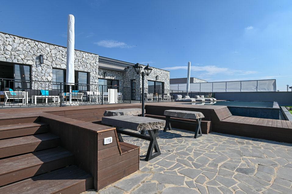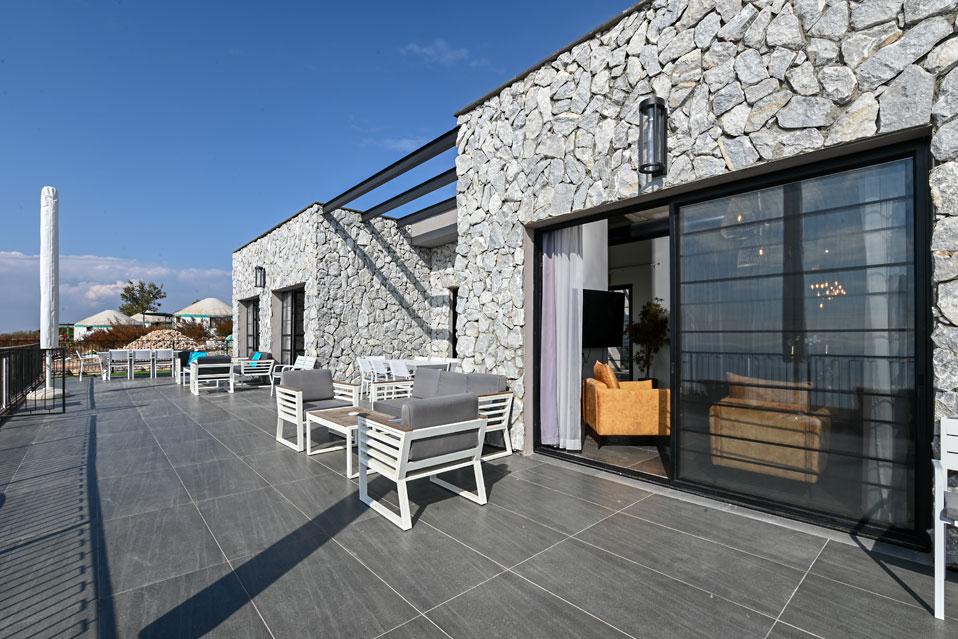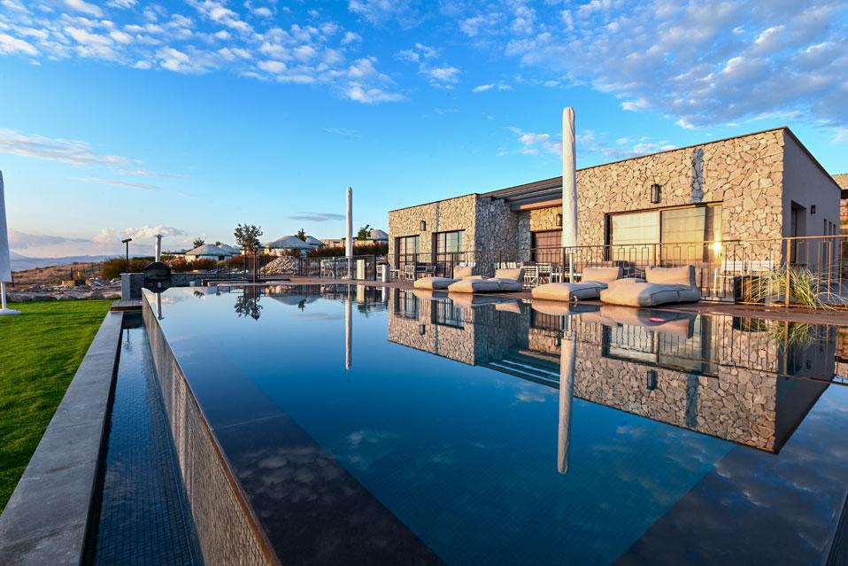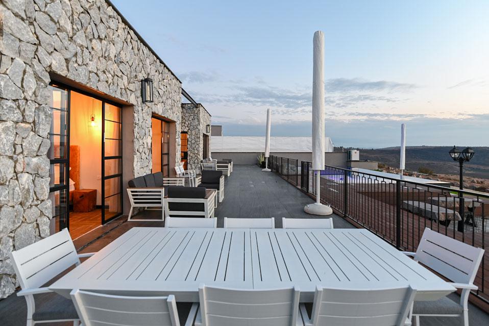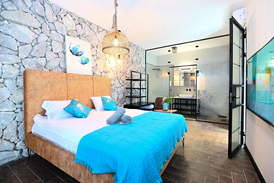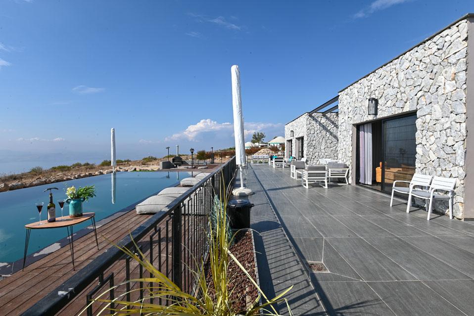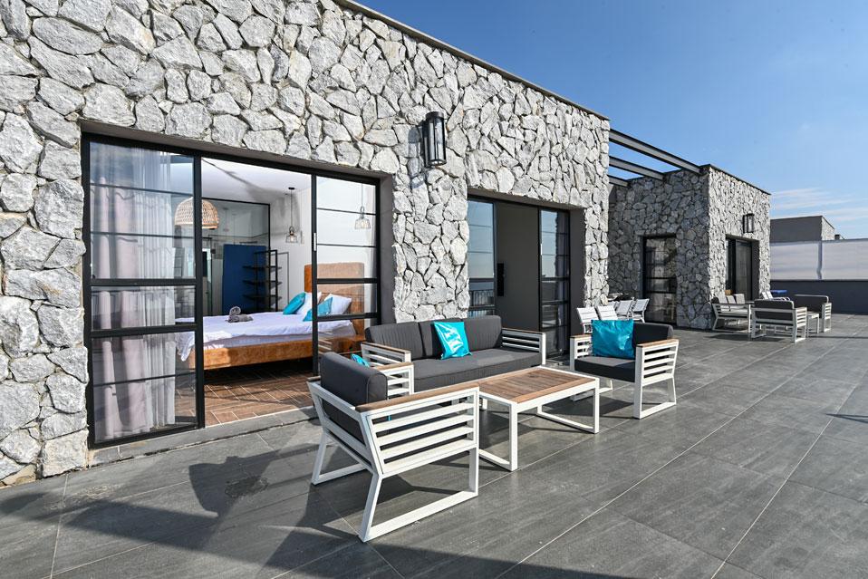 בכל וילה תמצאו 5 חדרי שינה מעוצבים ומרווחים, צמודי חדר רחצה, סלון אירוח גדול היוצא למרפסת נוף ולשקיעות עוצרות נשימה, מאובזר בספה יוקרתית, כורסאות נינוחות ומול מסך טלוויזיה חכמה. המטבח אינטגרלי ויש בו את כל מה שצריך כדי לתפור חופשה מושלמת בלי לצאת לשום מקום, שולחן אבירים ענק ושלל פרטי דקורציה ובעיצוב ייחודי מעטרים את הווילה (הביטו על התקרה המיוחדת- בסגנון אבסטרקט).