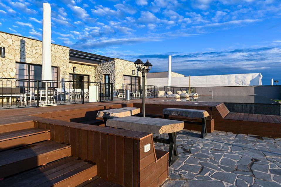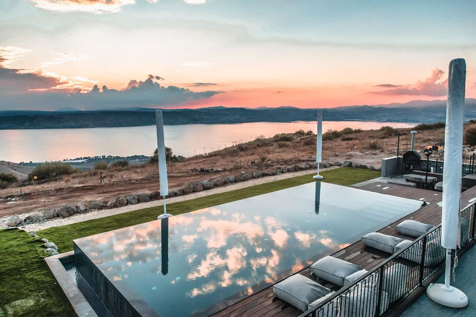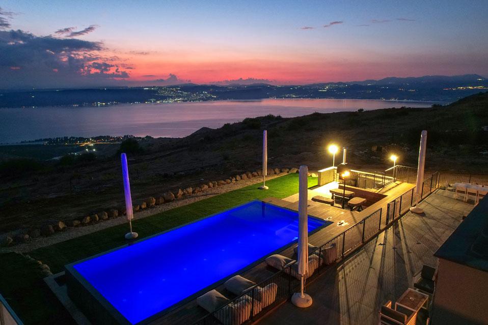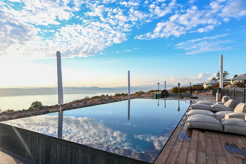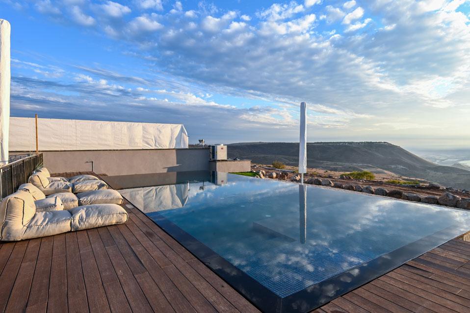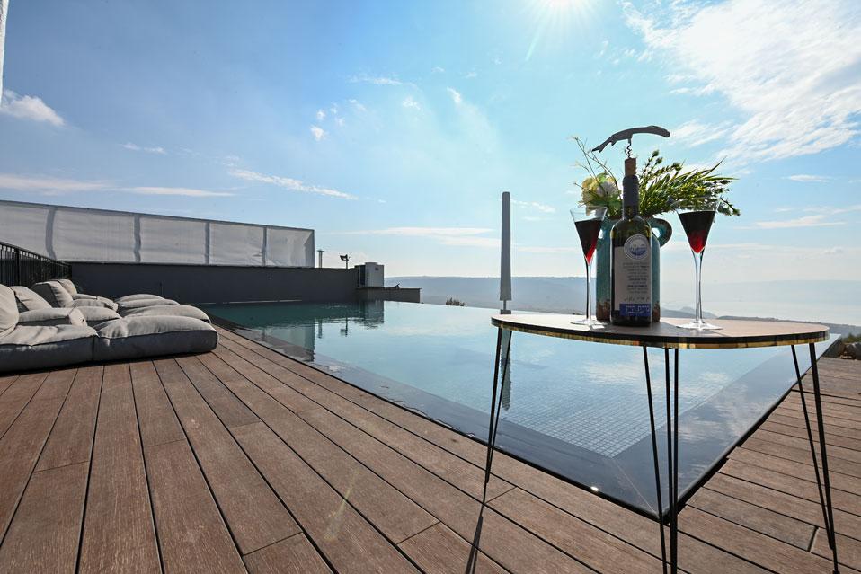 גולת הכותרת בהודולה היא בריכת האינפיניטי הענקית (מחוממת בחורף) המשקיפה ונותנת תחושה של שחיה בתוך מימי הכנרת, מול גן לאומי סוסיתא. את הבריכה מקיפים: מדשאה רחבה במיוחד, מטבח חוץ, מרפסת מרוצפת ומאובזרת בשלל פינות ישיבה, חלקן מוצלות, מיטות שיזוף, שולחן פינג פונג ובאווירה מדהימה.