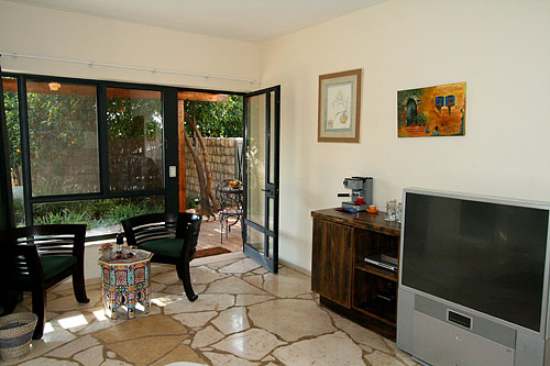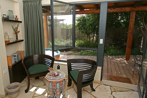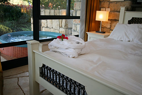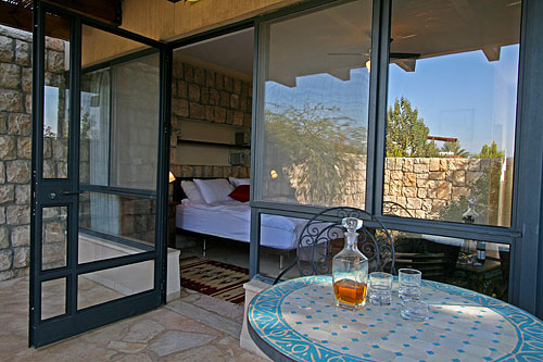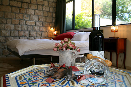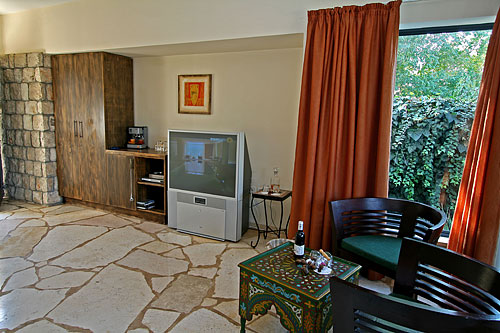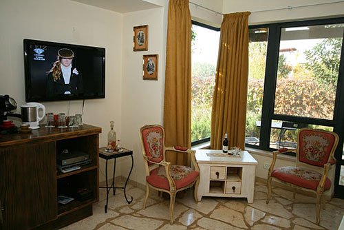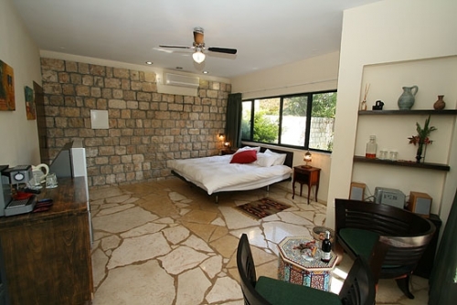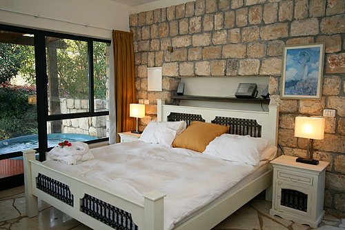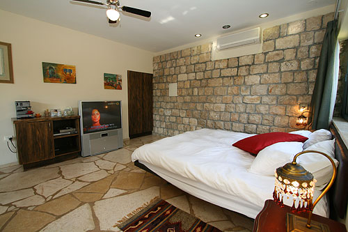 עם כניסתכם לסוויטה, תגלו שזוהי רק ההתחלה. העיצוב המוקפד של כל פרט, החל בריהוט העשוי בשיא הנוחות והפאר וכלה בריצוף האבן המקומית, נועד להביא אליכם את הרוגע המרחף כאן, ולהבטיח שמצב רוחכם יהיה נקי לחלוטין מכל הטרדות והדאגות שבחוץ. בסוויטה תקבלו אירוח יוקרתי ברמה הגבוהה ביותר: בכניסתכם לחדר הגדול והמרווח מן הסתם תבקשו להשתרע על המיטה הענקית (King Size ) העטופה במצעי סאטן צחורים; או אולי תחפצו להתנקות מאבק היום, ותחליקו לתוך חלוקי הרחצה הרכים והמזמינים; סבונים ריחניים העשויים מינרלים טבעיים ימתינו לכם בחדר האמבטיה המפואר; וכשתשובו ממנו, תוכלו להתרווח באחת הכורסאות ולהשתעשע מול המסך הענק ("42) המצויד גם במכשיר DVD; לבסוף, תסיימו את יומכם במיטה המענגת, וצלילי הלילה החרישיים יובילו אתכם לשינה שאין מתוקה ממנה.