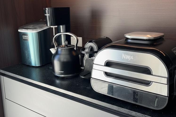 בקומה המרכזית מחכים סלון אירוח מפנק, פינת אוכל ומטבח מאובזר ברמה גבוהה במיוחד. המטבח בנוי לאירוח אמיתי וכולל אבזור עשיר שמאפשר לבשל ולארח בנוחות: מכונת אספרסו, מכונת קרח, כיריים אינדוקציה, כלי בישול וכלי הגשה, וגם פינוקים קטנים שממשיכים את הקו של “הכול מוכן”.