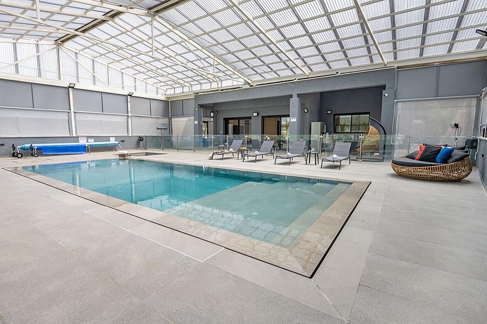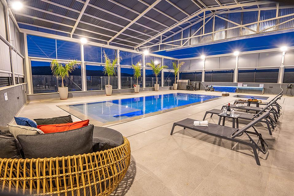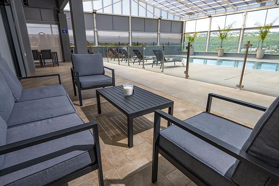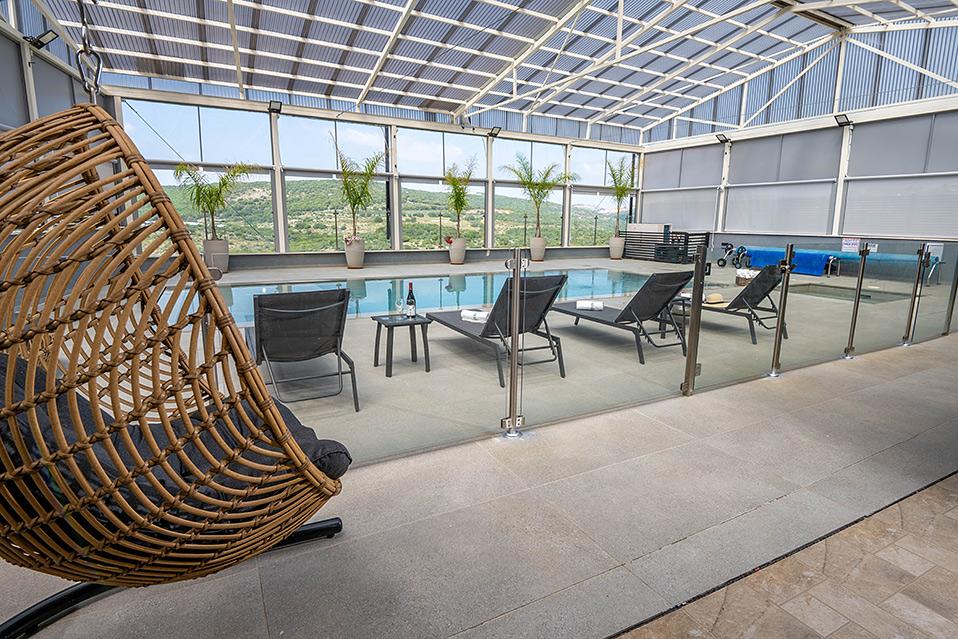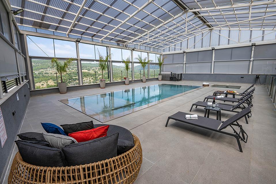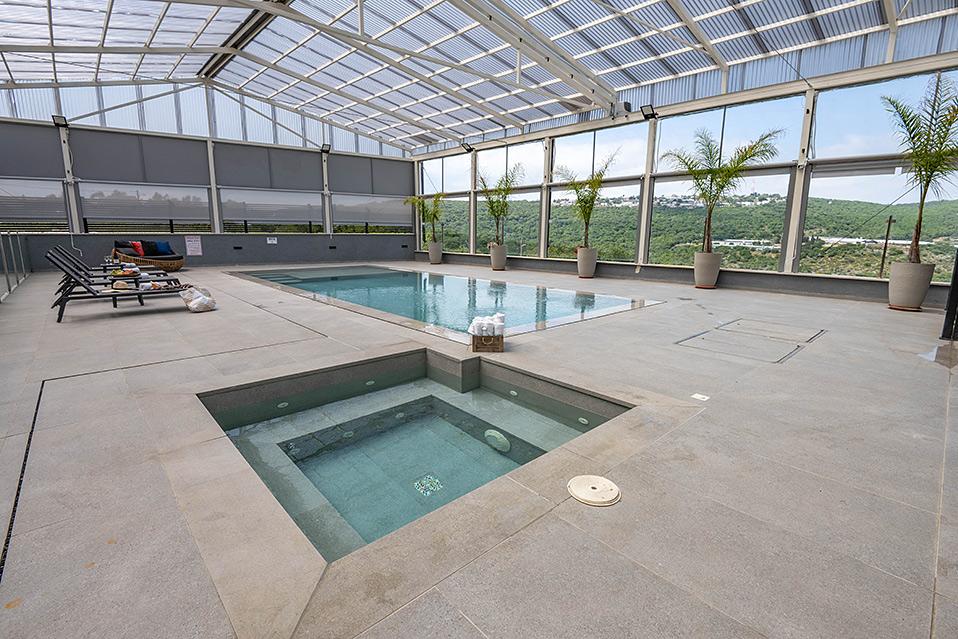 גולת הכותרת של וילה מול ההר היא ללא ספק החצר – מרחב חיצוני מרהיב עם בריכת שחייה פרטית מחוממת ומקורה כאשר הקירוי חשמלי וניתן לפתיחה בקלות, ג'קוזי ספא מפנק, מיטות שיזוף ופינות ישיבה מוצלות מול נוף הררי מרהיב. מכאן גם נולד שמה של הווילה – הנוף עוצר הנשימה של הרי הגליל הפונה ישירות מהבריכה והמרפסת, מעניק תחושת רוגע שלא ניתן למצוא בשום מקום אחר.