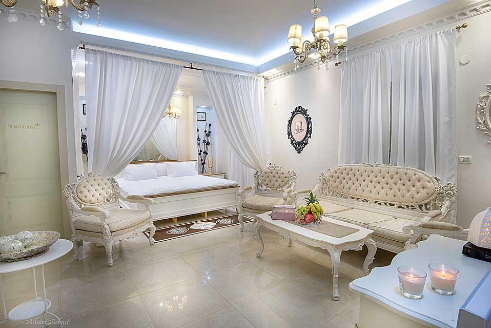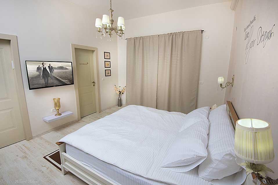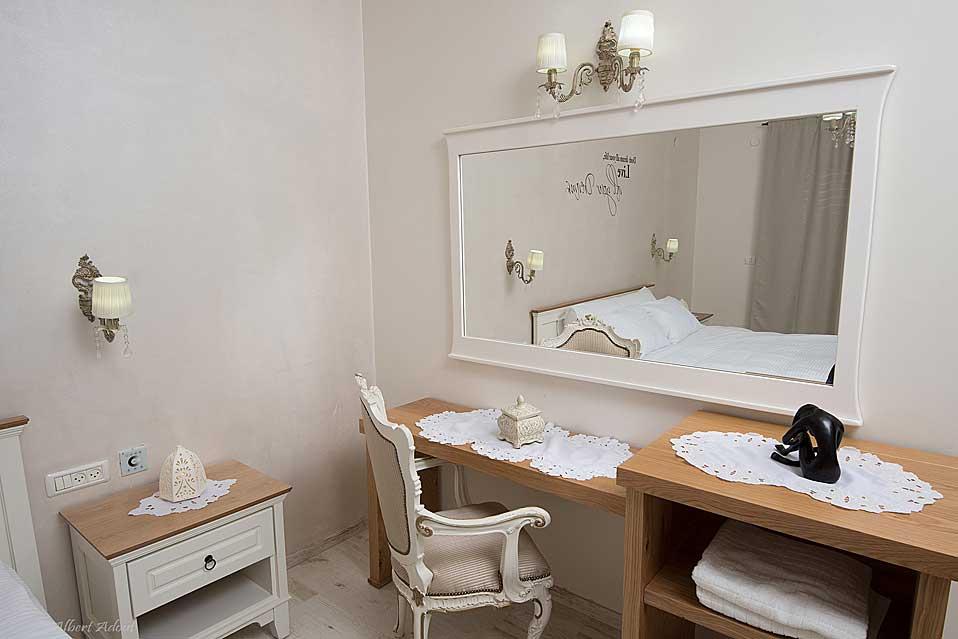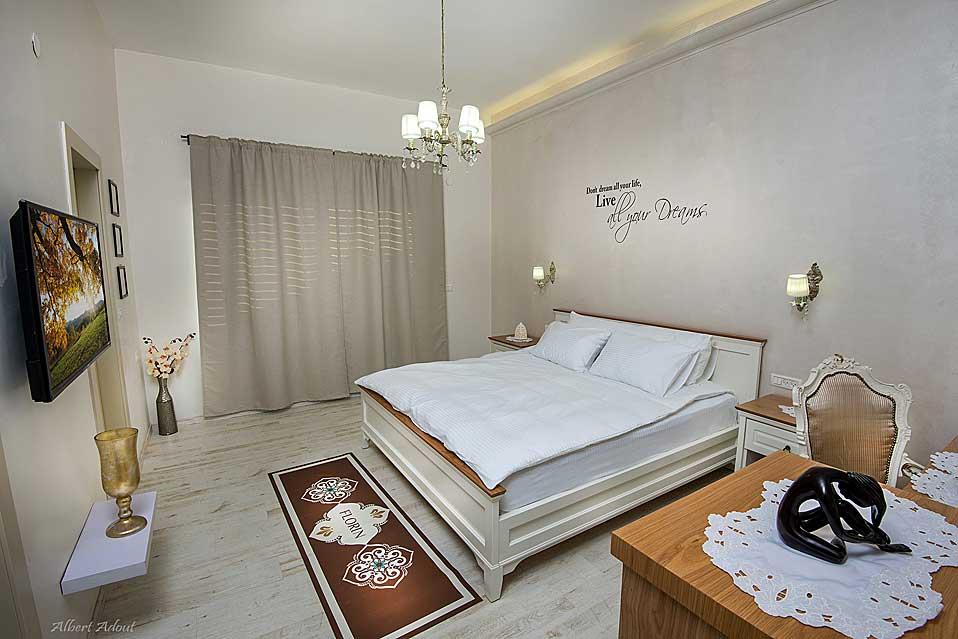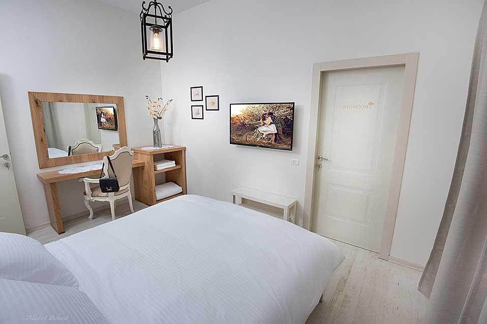 בכל חדרי השינה המסוגננים מיטה זוגית עם מצעים איכותיים, טלוויזיית LCD, חיבור לכבלים, מיזוג אוויר וכן פינת טואלט, שידה מצודדת או ארונית. שלוש מתוך 5 החדרים הינם סוויטות עם חצר רחצה צמוד ואחת הסוויטות כוללת גם מטבחון וכניסה נפרדת.