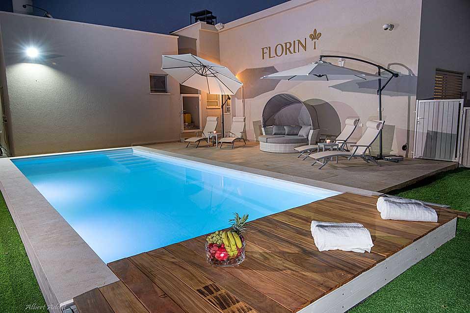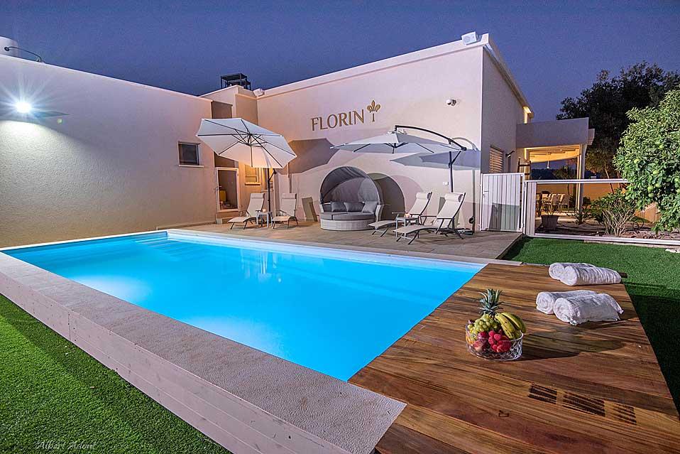 בין פסטורליה גלילית ירוקה במיוחד ניצבת וילה פלורין ומציעה חופשה משפחתית לעד 16 איש בסטייל קלאסי מפואר עם 5 חדרי שינה מעוצבים, סלון מרכזי, קונסלות משחקים מהנה, מסכי LCDבחיבור לכבלים, ג'קוזי ספא, בריכת שחיה שמחוממת בעונה, מתקן ברביקיו מאבן, שולחנות אוכל כפריים ושלל פינות ישיבה אינטימיות או קבוצתיות ברחבי המבנה והחצר הגדולה שופעת הטבע.