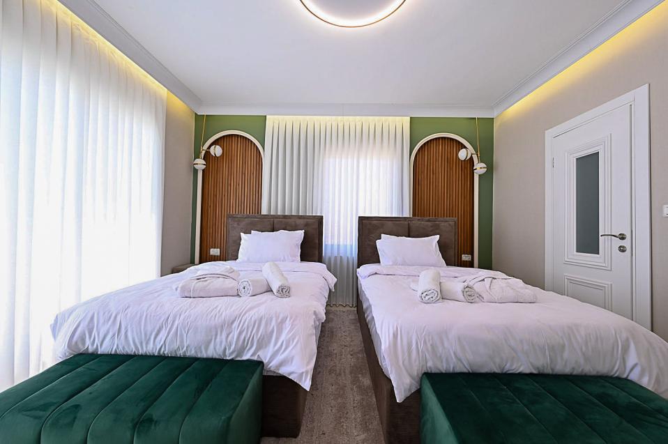 הווילה בנויה על שטח של כ־300 מ״ר בנוי, בתוך מגרש כולל של כ־500 מ״ר, ומתאימה ללינה של עד 21 אורחים. במתחם 7 חדרי שינה, כולם בסגנון סוויטות, עם השקעה מורגשת בפרטי החדרים, בנוחות ובאבזור. לרשות האורחים עומדים 4 חדרי רחצה וכן חדר שירותים נפרד נוסף, המאפשרים התנהלות נוחה גם באירוח קבוצתי מלא.