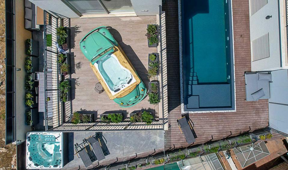 לצד הבריכה קיים גם ג’קוזי ספא חיצוני, המוסיף רובד נוסף של רוגע ופינוק לאזור החוץ.