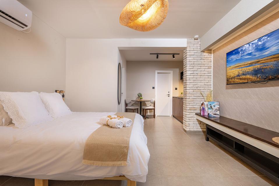 שני חדרי שינה, סלון עם ספה וטלוויזיה, מרפסת אישית ומטבחון. הסוויטות מציעות מרחב נוח למשפחות, עם תחושת בית והרבה יותר