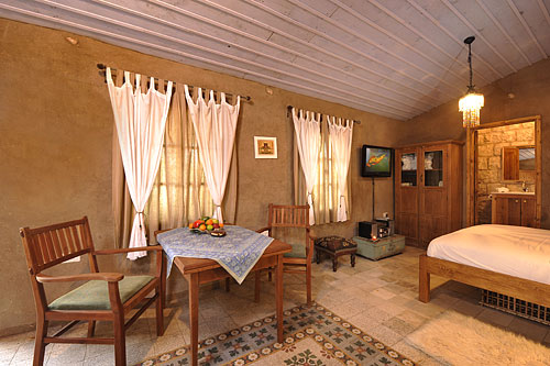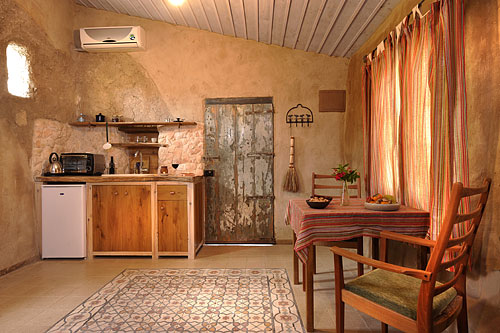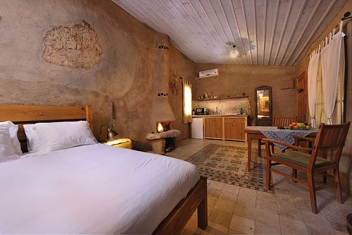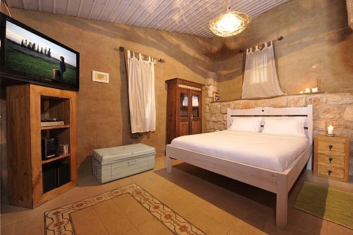 הקפדה על הפרטים הגדולים והקטנים בתכנון, בעיצוב ובאירוח יוצרת הרמוניה בחדר ובסביבתו. והמרפסת הפרטית של החדר צופה לחצר איכרים אותנטית מוקפת אבן וצמחייה.