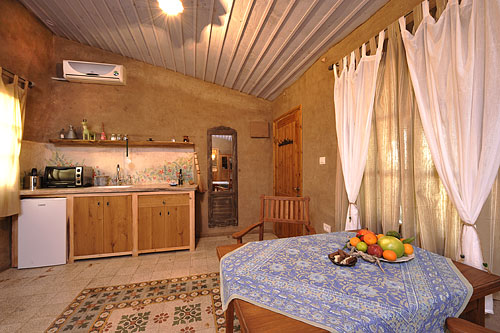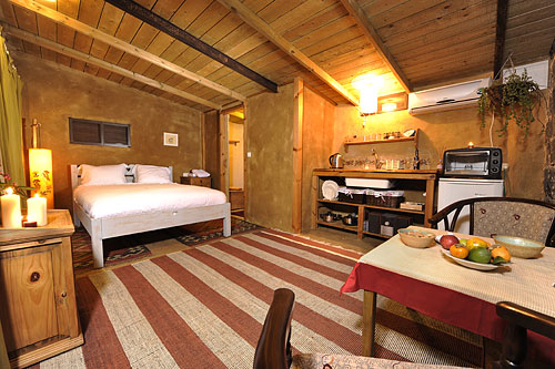 התייחסות לכל פרט ופרט בתכנון ובאירוח יוצרת נועם ושלווה בחדר ובסביבתו. והמרפסת הפרטית של החדר צופה לכרם ולערוגות הירק והתבלינים.