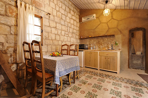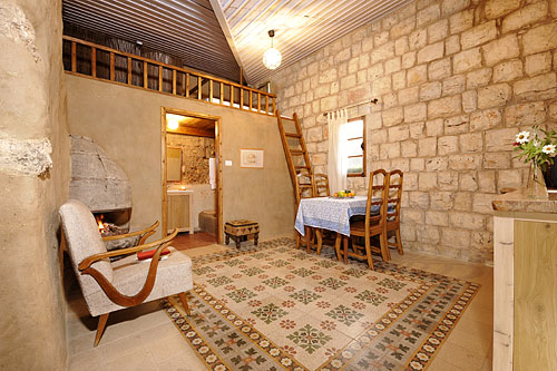 בית אבן מרשים ביופיו וגודלו. חדר זה הגדול מבין כל החדרים מכיל חדר שינה זוגי גדול ומרווח וסלון עם מטבח כולל פינת ישיבה גדולה המשמשת כמיטות לילדים, פינת אוכל, מקלחת עם אמבטיית אבן גדולה וייחודית. לחדר צמודה מרפסת ענקית, מגוון פרחים, תבלינים וירקות העונה. לשבת במרפסת עם תה צמחים רק לקטוף, לטעום וליהנות.