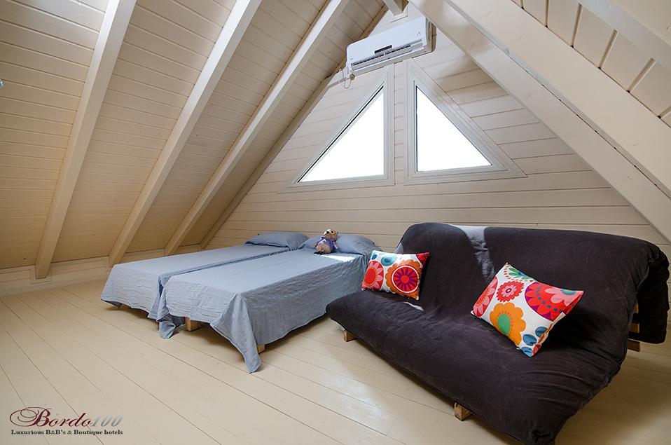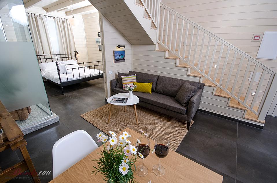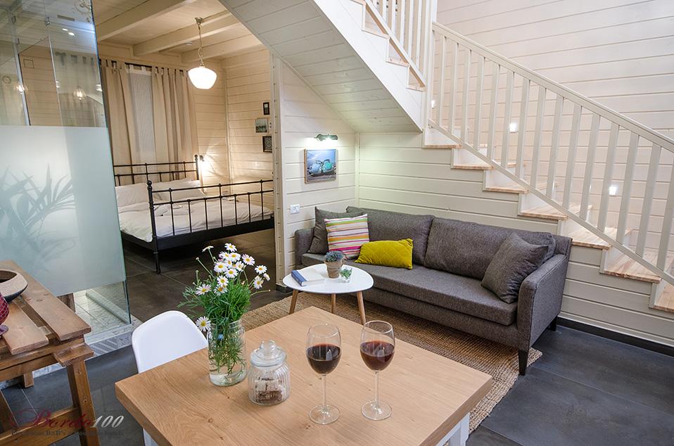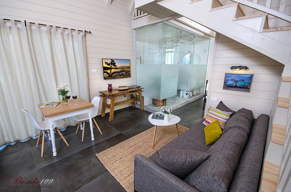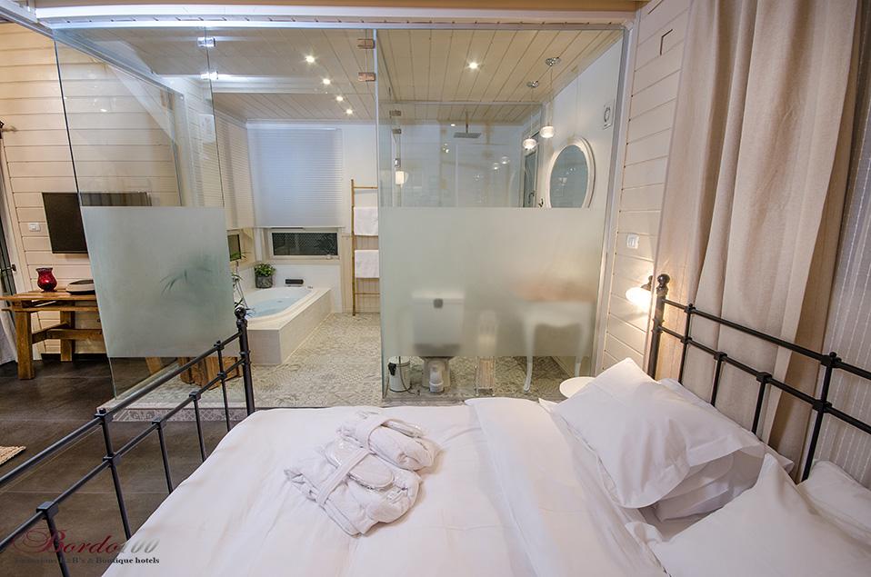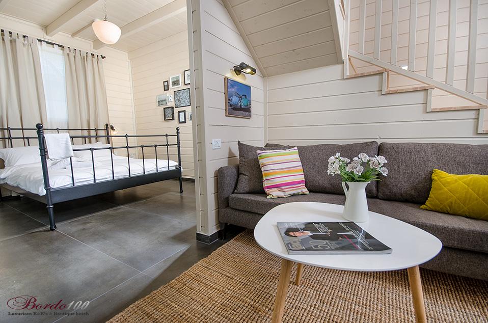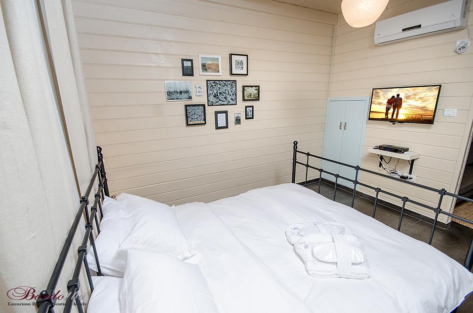 מתחם פרטי מוקף גינה עשירה, בקתת עץ מעוצבת ומדוגמת להפליאאורלי המקסימה מכניסה אותנו אל אחת הסוויטות היפות והנוצצות שפגשנו ונותנת לנו רגע להפנים. התמונות מדברות בעד עצמן - זוהי בקתת עץ כפרית מושלמת הכוללת קמין ונוף שדות פסטורלי הנשקף מהחלון ומסביב. קומת הכניסה מכילה את חדר השינה ובו מיטה איכותית ומזמינה, חדר רחצה מפואר כולל ג'קוזי זוגי מדליק, סלון ופינת אוכל, מטבחון מצוין לחופשה, מסך טלוויזיה - ובקיצור, כל מה שצריך בשביל חופשה מושלמת בצפון. בסוויטה יש קומת גלריה מגניבה במיוחד עבור ילדים - ובכלל, חצבני ביסוד המעלה הוא מסוג המקומות בהם ילדים (ומבוגרים) ירגישו בתוך אגדה.