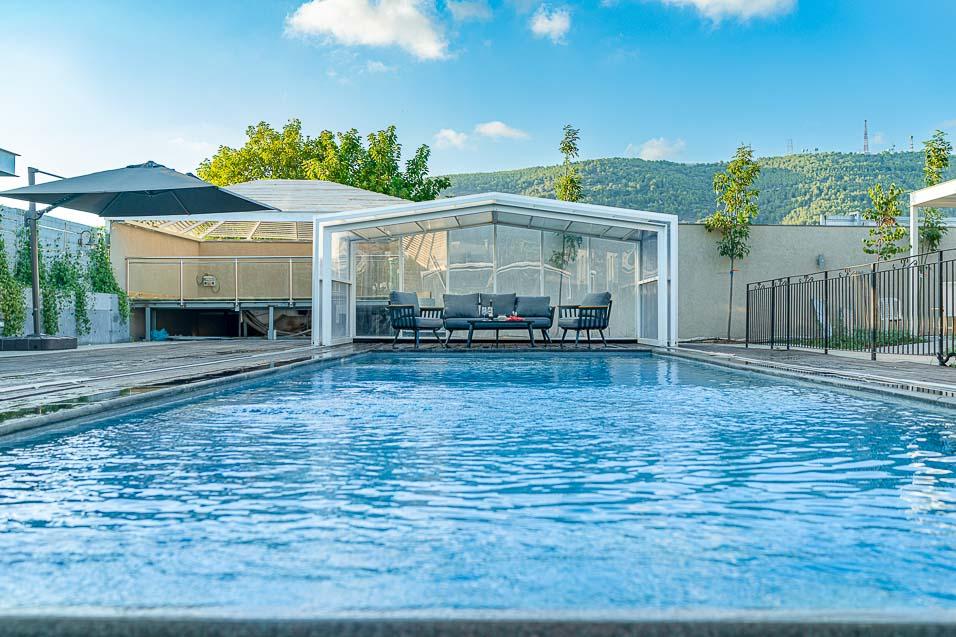 נתחיל מהסוף: אנו בבריכה הענקית, מוקפים בנוף ההרים הירוקים, והצליל היחיד הנשמע הוא שכשוך המים. מקיף אותנו מתחם חיצוני גדול במיוחד ופרטי, בו כל פינה מתוכננת ומושקעת: הג'קוזי הענקי שוכן על מרפסת מוגבהת משלו, פינות השיזוף המרווחות מזמינות להשתרע, פינות הישיבה המוצלות הן המקום המושלם להמתין לארוחה שתרד מהברביקיו המקצועי בחוץ - ובינתיים אפשר גם להנות משולחן הביליארד הגדול. מי שמחפש שלווה נכנס פנימה להשתרע מול מערכת הקולנוע המתקדמת, אם החורף הגיע - הבריכה במשק 47 מזמינה לשחייה כייפית מתחת לגג השקוף ולהנות מהתאורה הדקורטיבית - כאמור, סטנדרט האירוח כאן גבוה במיוחד, רמת האיבזור מאפשרת מקסימום נוחות והמקצועיות הזו מתורגמת לאווירת נופש עמוקה ורגועה, ניתוק מלא במקסימום פרטיות.