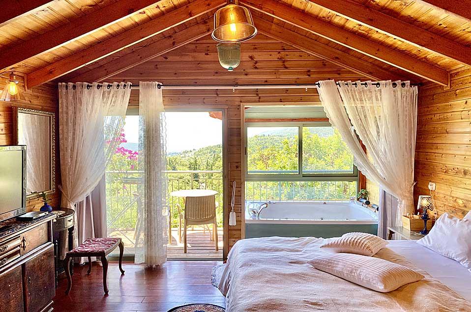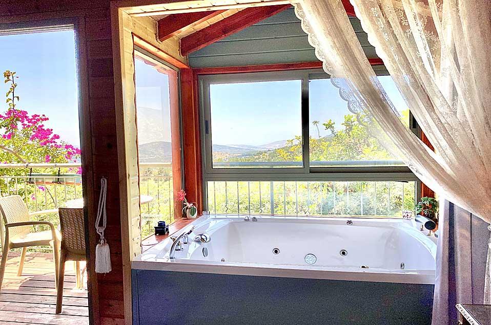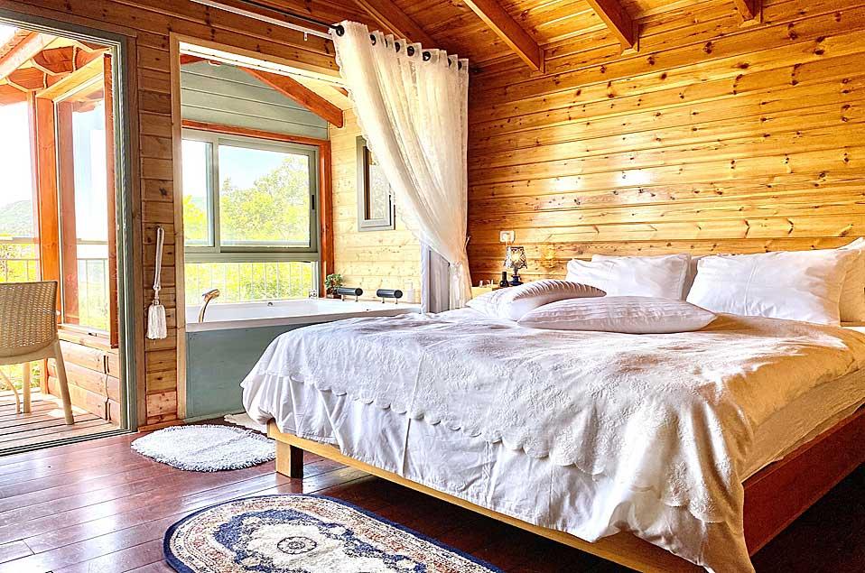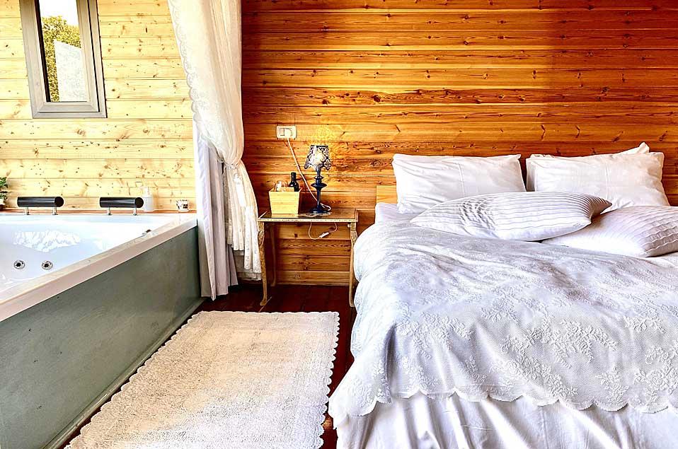 בין עצי הזית והאלונים, ניצבות להן שתי בקתות עץ מפנקות ורומנטיות - הדר יסמין , שמעוצבות בחום ואהבה ומאובזרות בכל הנחוץ לחופשה נוחה ומפנקת.
