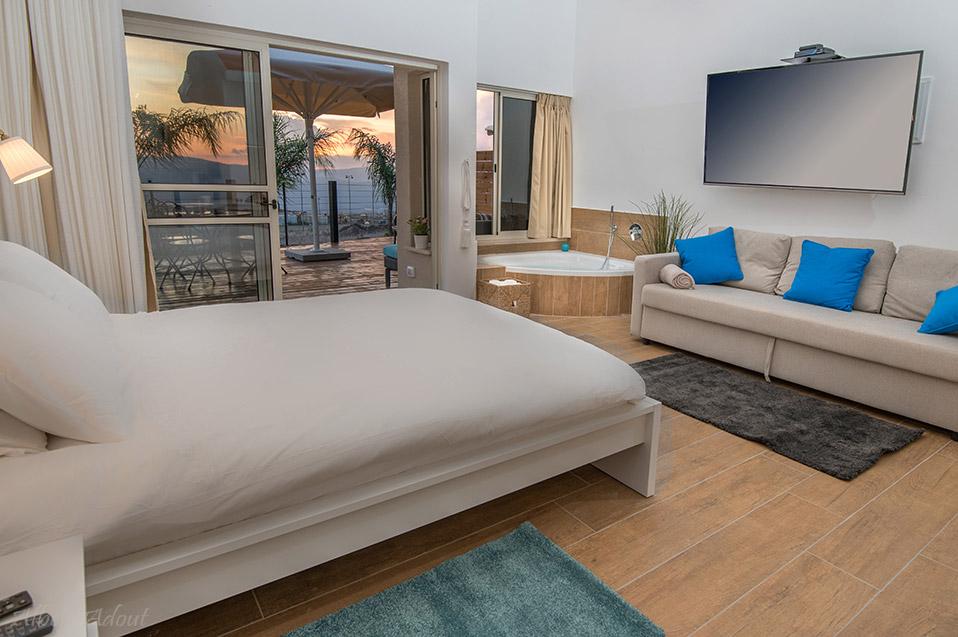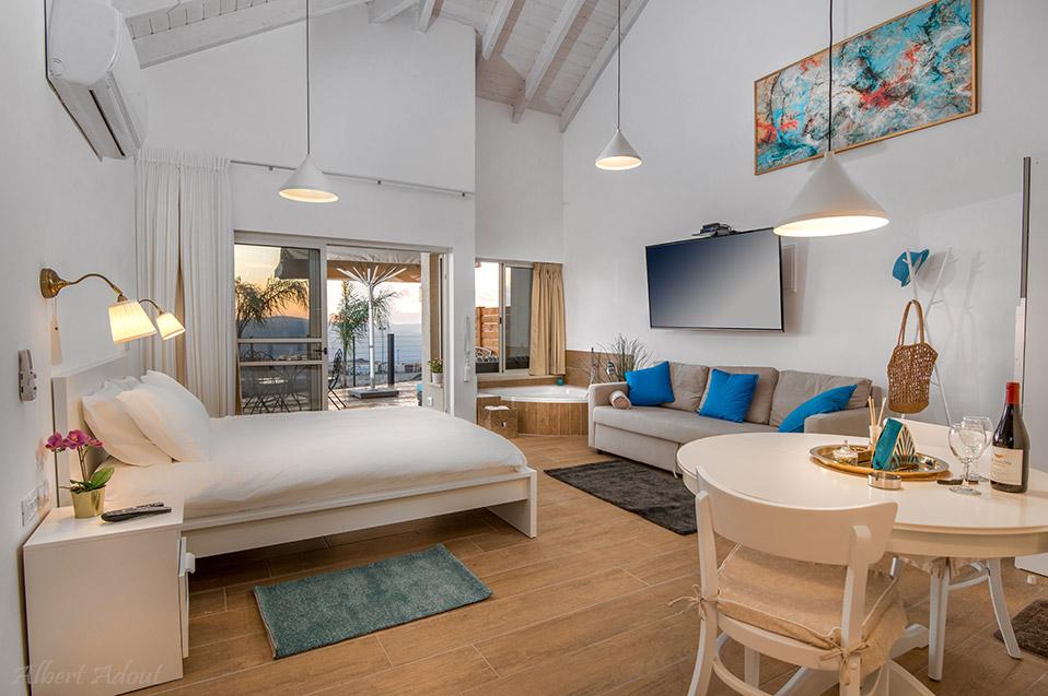 נוף מדהים מהמרפסות, סוויטות מרווחות ומעוצבות, עם תקרות גבוהות.