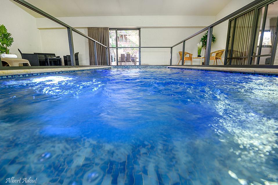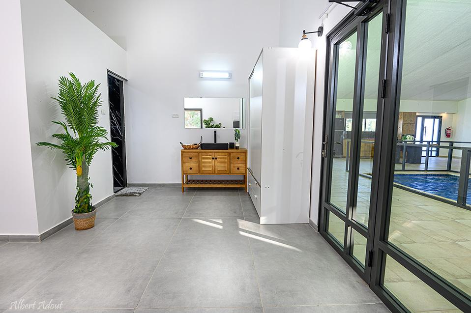 הכניסה לסוויטה הינה מהחלל המקורה המכיל בריכת שחיה מחוממת (ומקורה), פינת אוכל, סלון גינה, כסאות נוח ומסך LCD גדול (65") עם מערכת טלויזיה חכמה- SMART TV. המטבח נמצא גם הוא בחלל המקורה, מאובזר במיטב מוצרי החשמל, ומאפשר תנאי בישול ואירוח אופטימליים, חלונות רחבים לאורכו של המטבח ומרפסת נוף פתוח, עם שולחן אוכל מאפשר להתפנק בארוחה מול מול הפסטורליה שסובבת את המתחם.