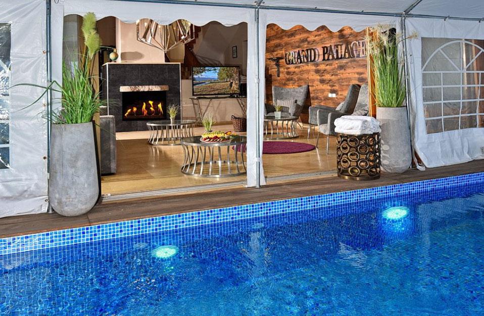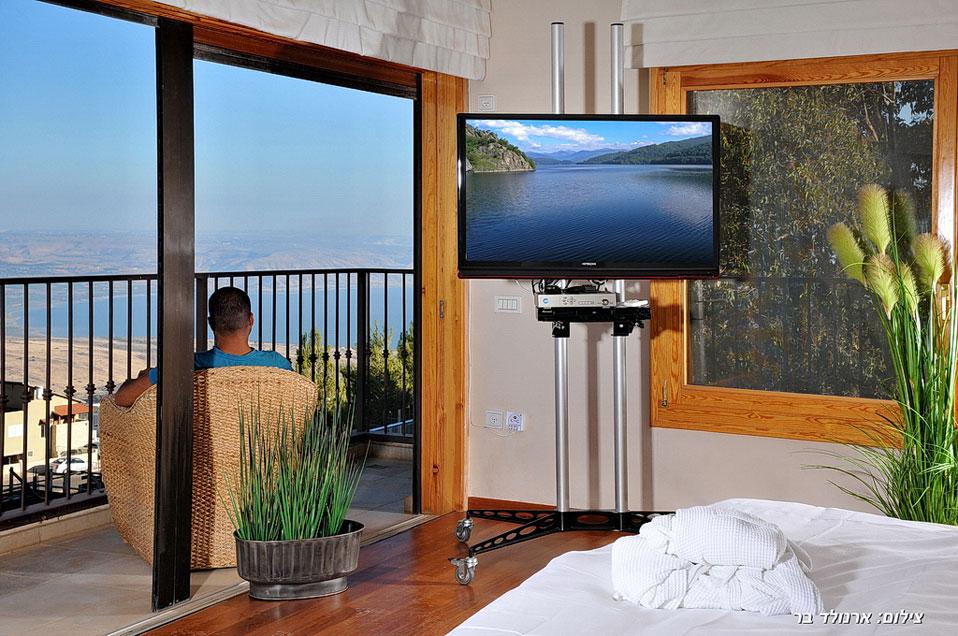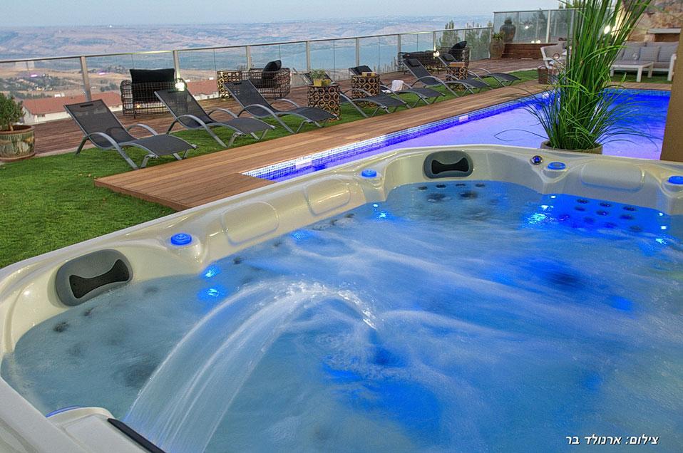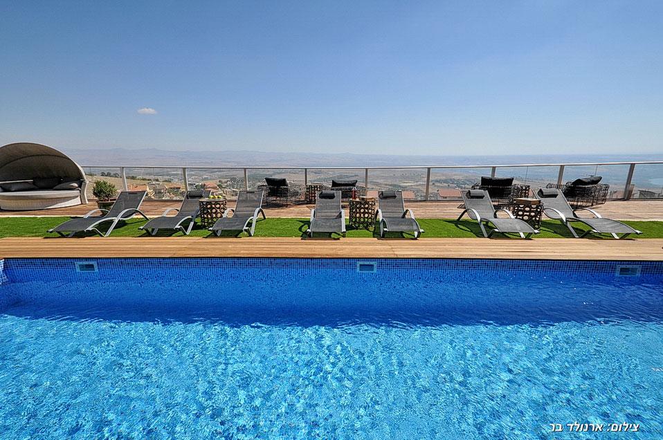 הסוויטה בעלת מתחם חוץ מפנק במיוחד בעל ג'קוזי ספא, בריכה גדולה ומעוצבת, מיטות שיזוף ופינות ישיבה יוקרתיות ונוף פנורמי לעבר הכנרת והחרמון
