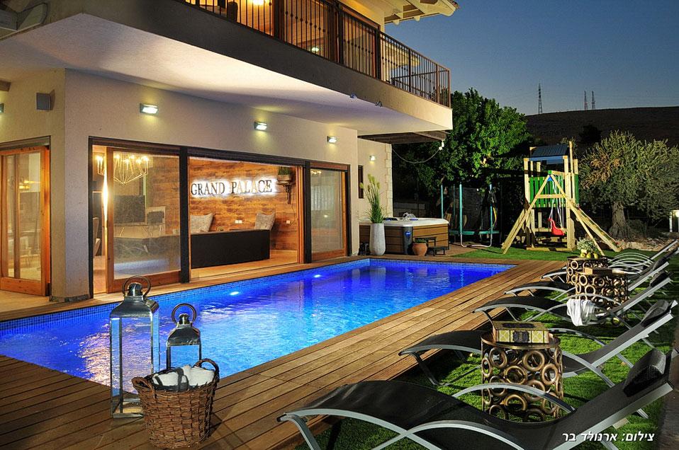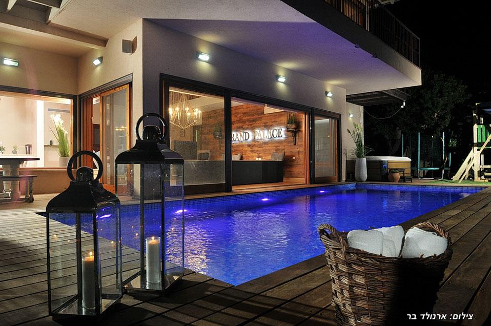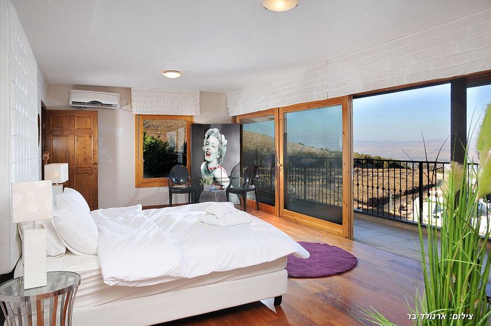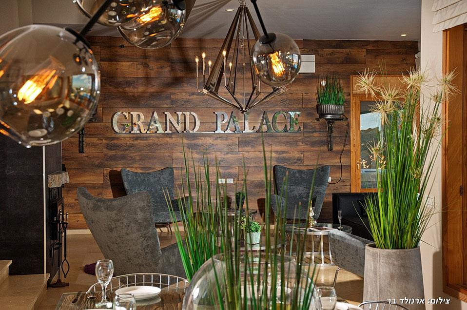 סוויטה גראנד פאלאס המציעה אירוח בעל פרטיות מלאה לזוגות בלבד. חלל פנים הסוויטה גדול במיוחד הכולל סלון אירוח, פינת אוכל, מטבח מאובזר וחדר שינה רומנטי עם מרפסת הצופה לנוף פנורמי לעבר רמת הגולן החרמון והכנרת בסוויטה מסך טלוויזיה LCD, מיטה רחבה, חדר רחצה זוגי צמוד עם אמבט וסאונה פרטית.