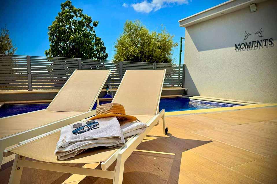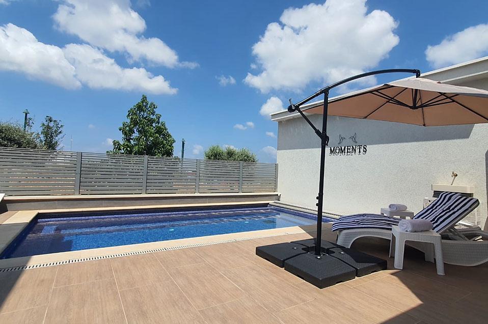 מומנטס בנווה זיו היא סוויטה שתרצו לצלם ולהצטלם בה, וגם לא לצאת ממנה. ההשקעה במתקנים ובעיצוב היא חלק ממה שהופך את החוויה כאן ליוצאת דופן. בכל כיוון אליו העין מביטה, בכל משטח עליו נחה היד ובכל כוס אספרסו או יין ניכר הרצון להעניק לנו אירוח בלתי נשכח בסטנדרט המתקדם ביותר. העיצוב ההרמוני והאלגנטי זורם בקווים נקיים ומרגיעים והמחשבה ניכרת בפרטים הגדולים והקטנים כאחד: סלון העור המרווח במיוחד והמסך הענק והחכם מולו (כולל חבילת תוכן נדיבה ביותר…), הסאונד המצוין - והרשימה ארוכה: המטבח המאובזר בציוד מתקדם מציע הכל כולל תנור אפיה, מיקרו, כיריים וכמובן כלים, חדר הרחצה המפואר הוא חוויה עיצובית ושימושית בפני עצמו כולל ראש גשם וספסל ישיבה, החימום התת רצפתי ידאג לכם כשקר, מיטת הקינג סייז הענקית תחבק אתכם עם מצעים מושקעים ומסך משלה. מה אפשר עוד לבקש? החנייה פרטית, הכל נוצץ והניחוח הוא של נופש יוקרתי אמיתי ומקום שכבר כדאי להזמין שוב.