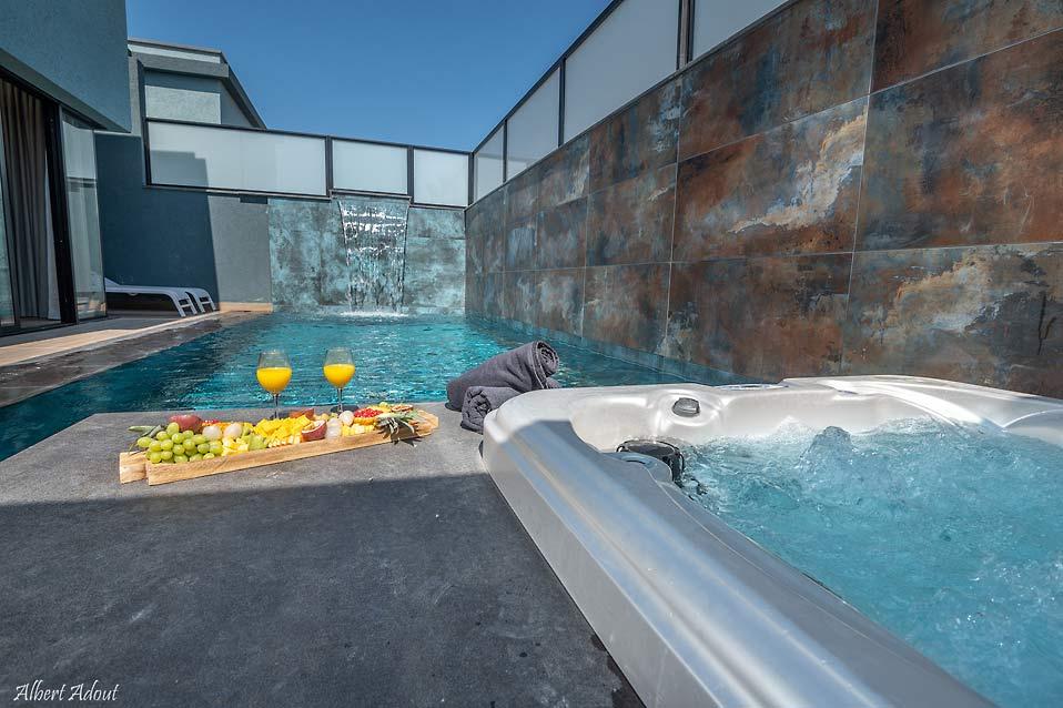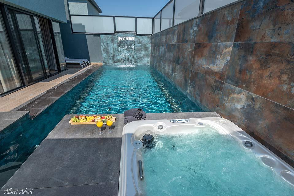 ג'קוזי ספא פרטי לצד הבריכה בסוויטות בוטיק 1,2