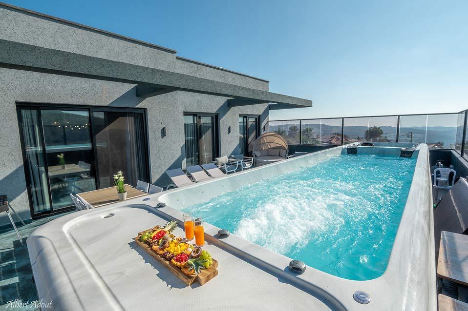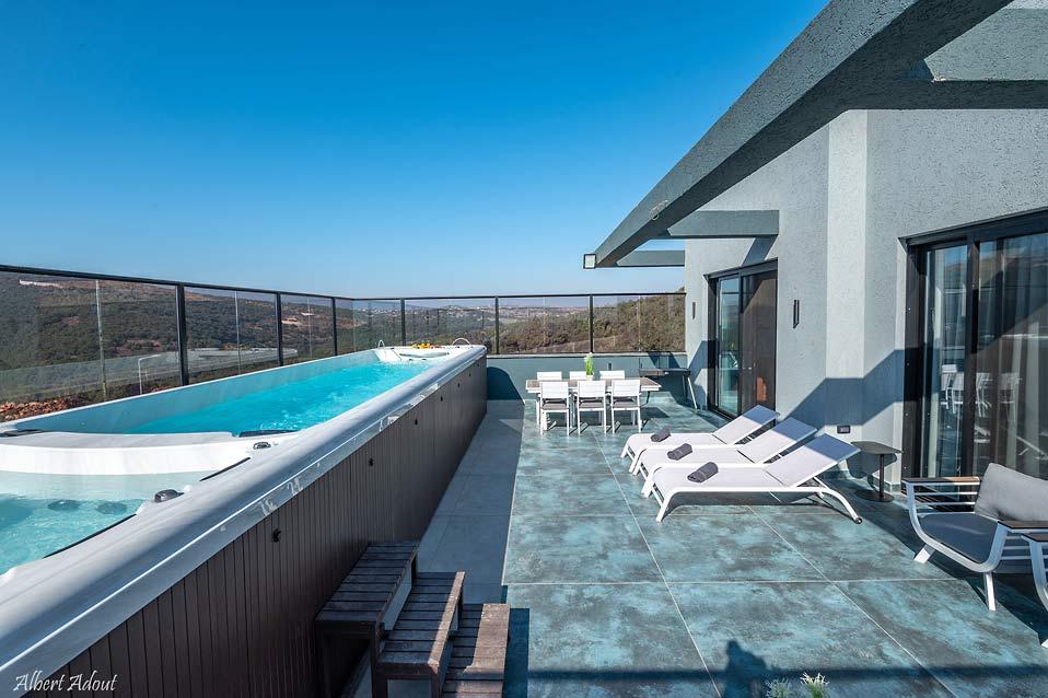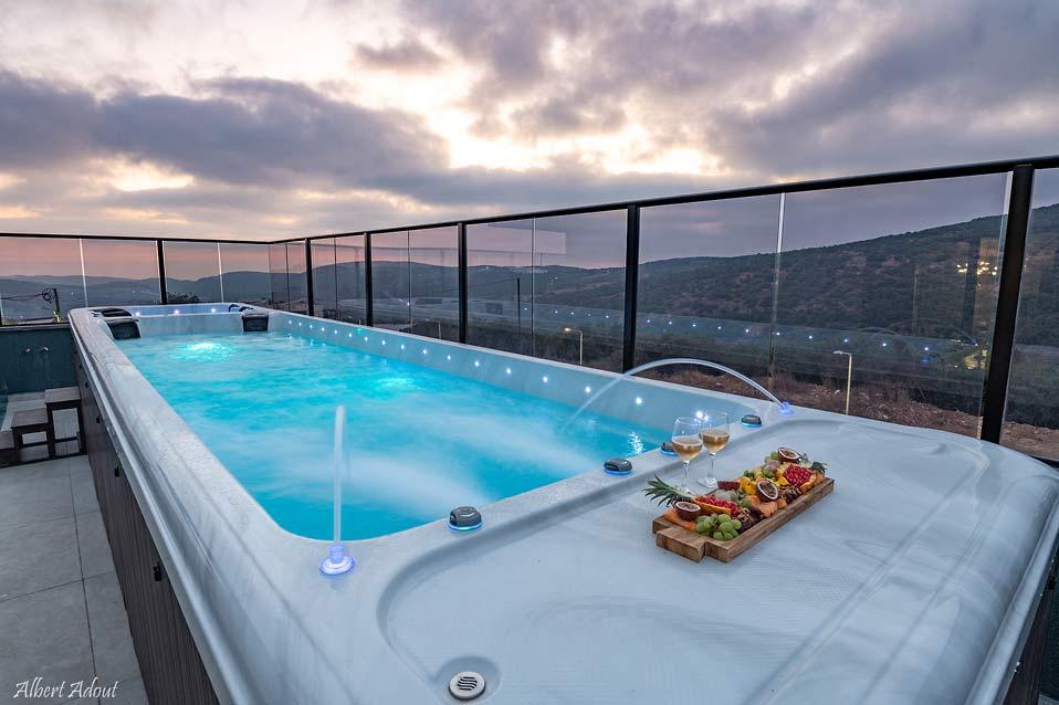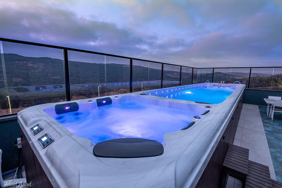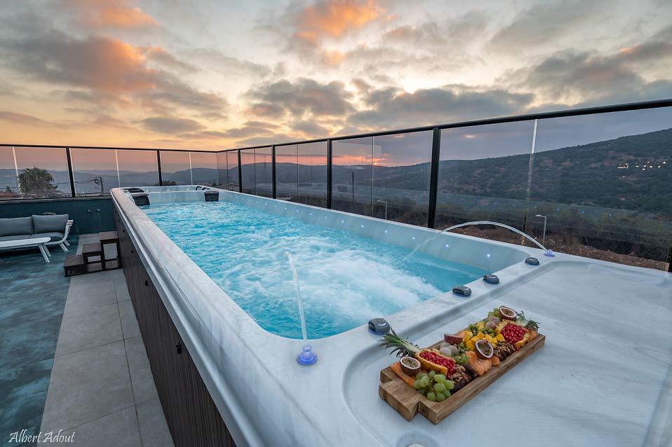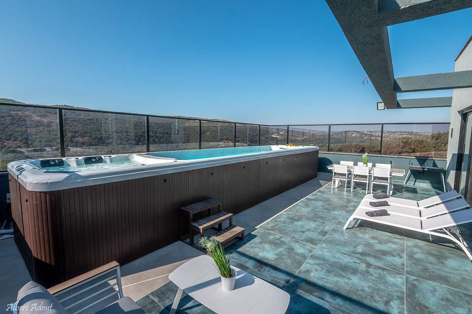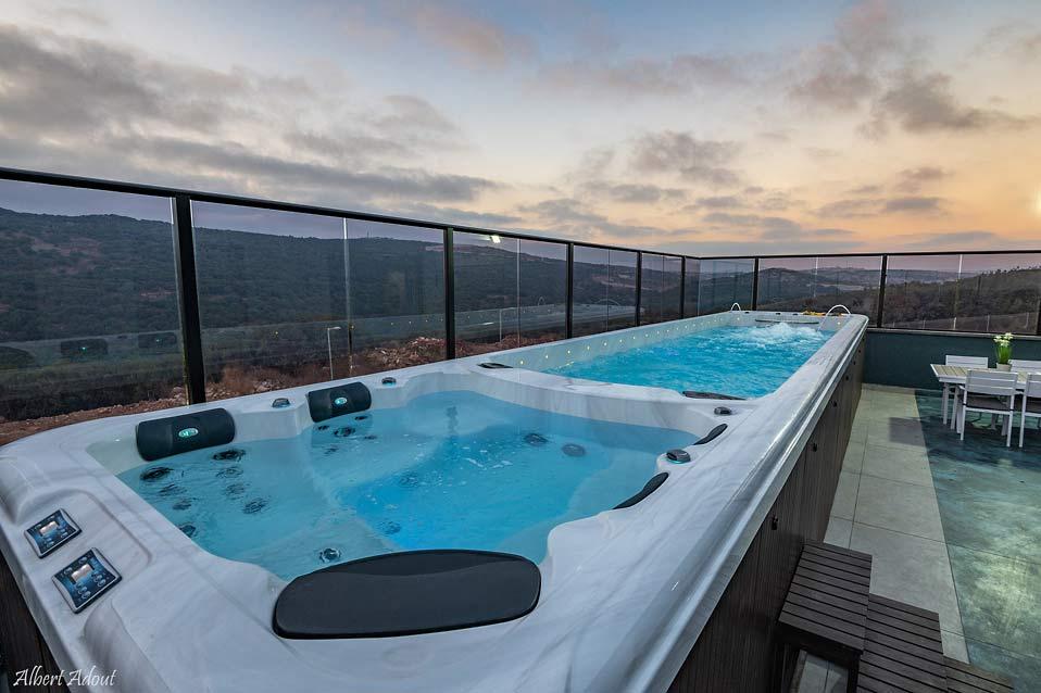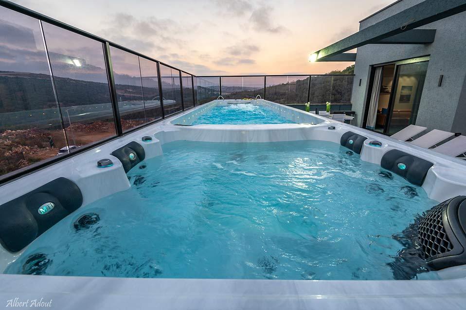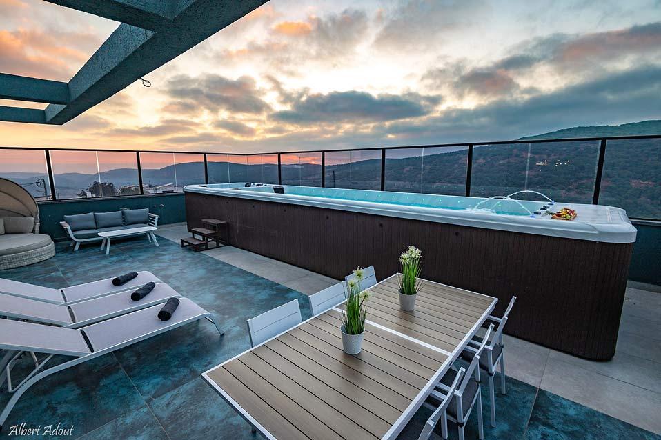בריכת זרמים עילית גדולה וג'קוזי ספא בפנטהאוז המשפחתי