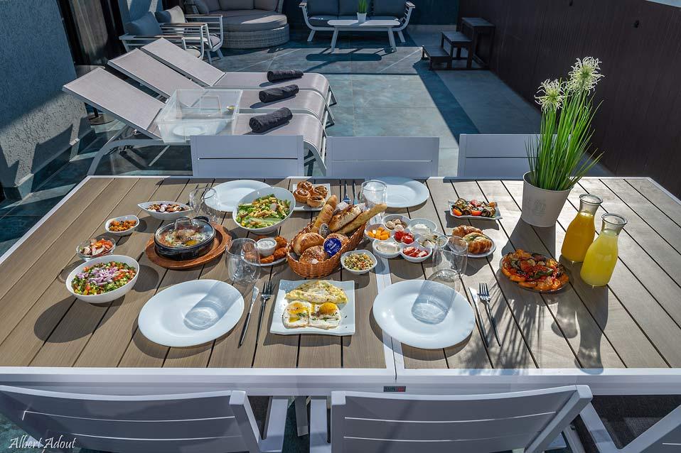 האורחים בסוויטת נעמי נהנים גם מארוחות בוקר מקומיות עשירות, המורכבות מחומרי גלם טריים ואיכותיים מהאזור – גבינות עזים, לחמים אפויים במקום, ירקות מהשדה וממרחים תוצרת בית. ניתן גם להזמין טיפולי ספא ישירות לסוויטה, הניתנים על ידי מטפלים מקצועיים.