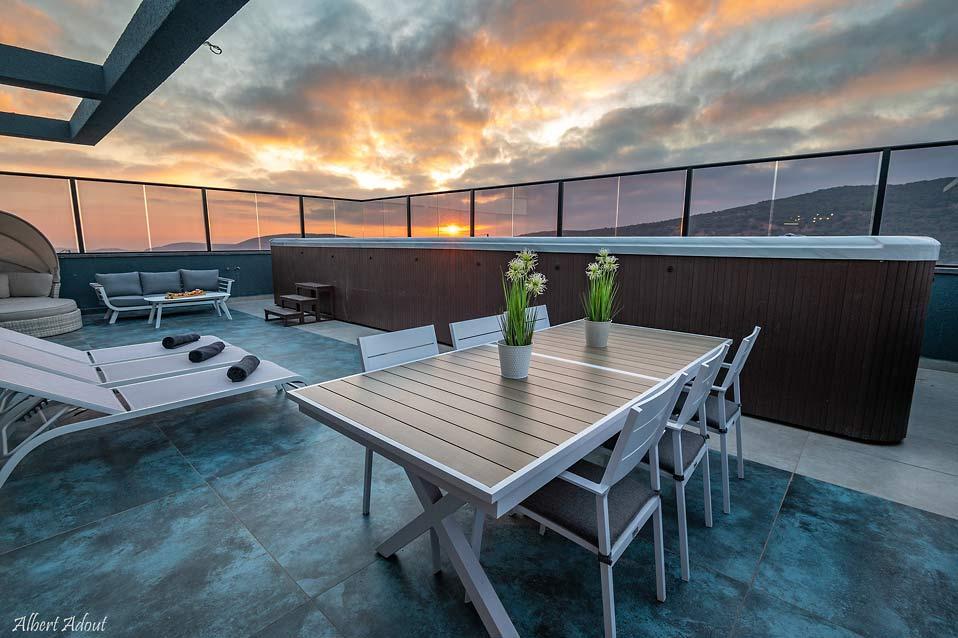 <p>מרפסת גדולה רחבת ידיים צופה לנוף מקסים בפנטהאוז המשפחתי</p>