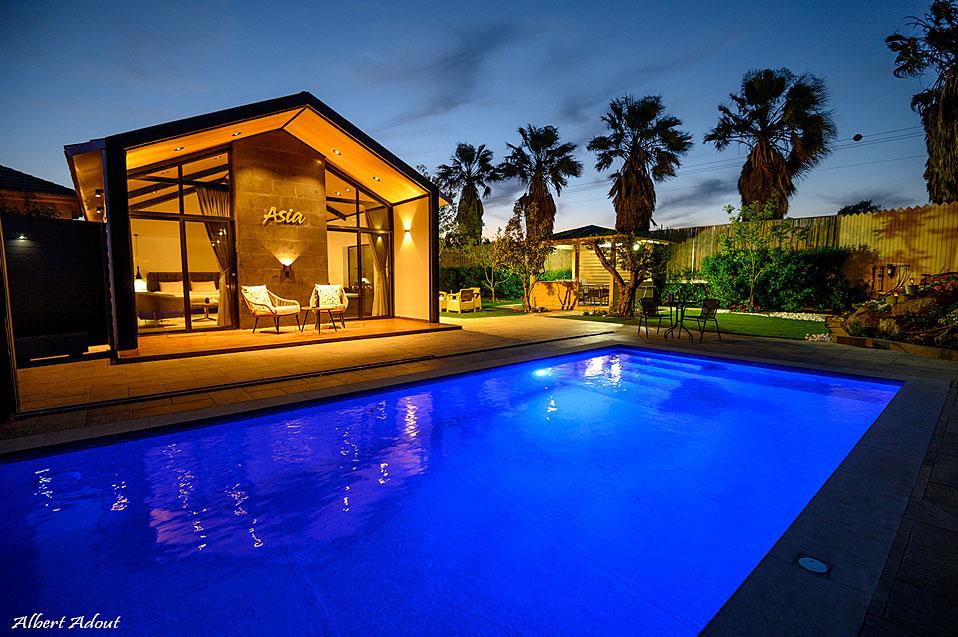 כבר במבט מבחוץ אנו מתרשמים מהבנייה המיוחדת של סוויטת אסיה ומהקיר השקוף הפונה אל הבריכה. זהו מבנה מושקע ומרשים והוא משדר יוקרה - ויותר מכך ברגע שנכנסים: הסוויטה המרווחת עוצבה במחשבה רבה והתוצאה אסתטית ואטרקטיבית, נעימה ומשרה אווירה שלווה, זהו מתחם אירוח מושלם לנופש יוקרתי. ההשקעה באסיה ניכרת בכל פינה ויוצרת את האווירה הייחודית. הפריטים הדקורטיביים המקסימים מסקרנים ומיוחדים, המיטה המפנקת מציעה מזרן אורטופדי איכותי במיוחד ומצעים יוקרתיים המשלימים את הפינוק, ליד המיטה ניצב כתכשיט ג'קוזי פנימי גדול מול חלון, מסך הטלוויזיה ענק והמערכת חכמה, המטבחון מאובזר ומושקע במיוחד, חדר הרחצה האקסקלוסיבי מציע מתקנים ותמרוקים ברמה גבוהה ואת האווירה הייחודית שיש כאן משלים קמין יוקרתי, מושלם ללילה גלילי סוער ורומנטי. אם חיפשתם צימר עם קמין ובריכה מחוממת, סוויטת אסיה היא אחת המצטיינות בקטגוריה הזו.