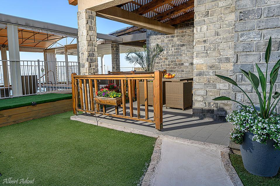בחצר המרכזית ישנו סלון חוץ גדול, בריכת שחיה גדולה במיוחד, מוצנעת, מחוממת ומקורה, עם אפשרות לפתיחה/סגירה בקלות. שלל ערוגות נוי , ספסלים, פינות ישיבה ונדנדה מפוזרים בשטח החוץ. חדר אוכל גדול, מעוצב ומאובזר לאירוח בשבתות, מתאים לכ-25 אורחים ומשותף לארבע הסוויטות.