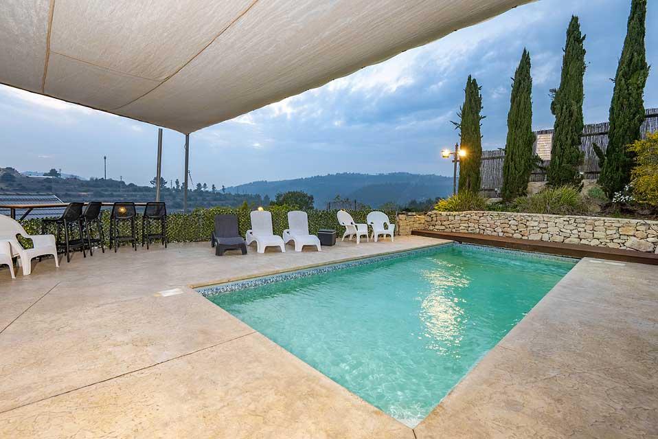 • מתחם חוץ מטופח עם בריכת שחיה מחוממת צופה לנוף