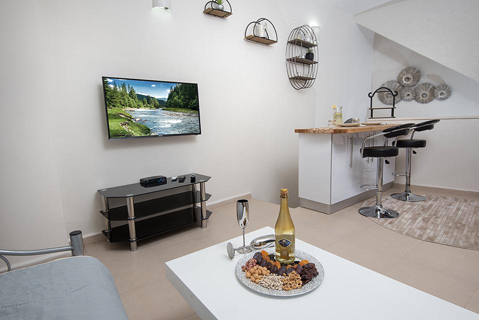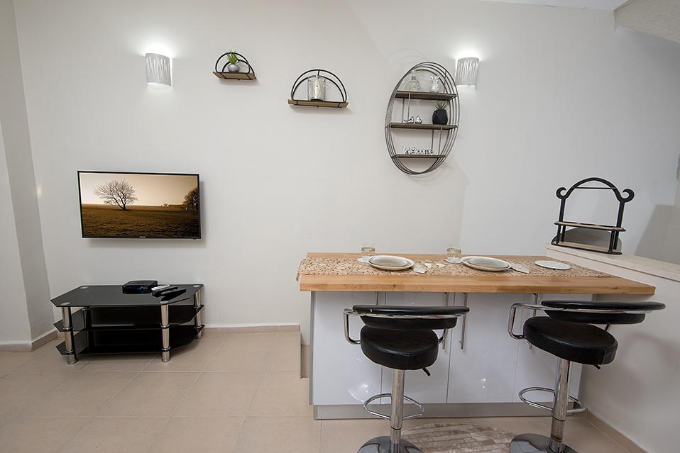הסוויטה מעוצבת בסגנון קלסי מודרני וכוללת חלל אירוח עם ספה, שולחן קפה ומסך טלוויזיה, מטבח מאובזר ושולחן בר צמוד, חדר רחצה עם מקלחון ראש גשם זוגי וחדר שינה רומנטי עם מיטה זוגית ומסך טלוויזיה.