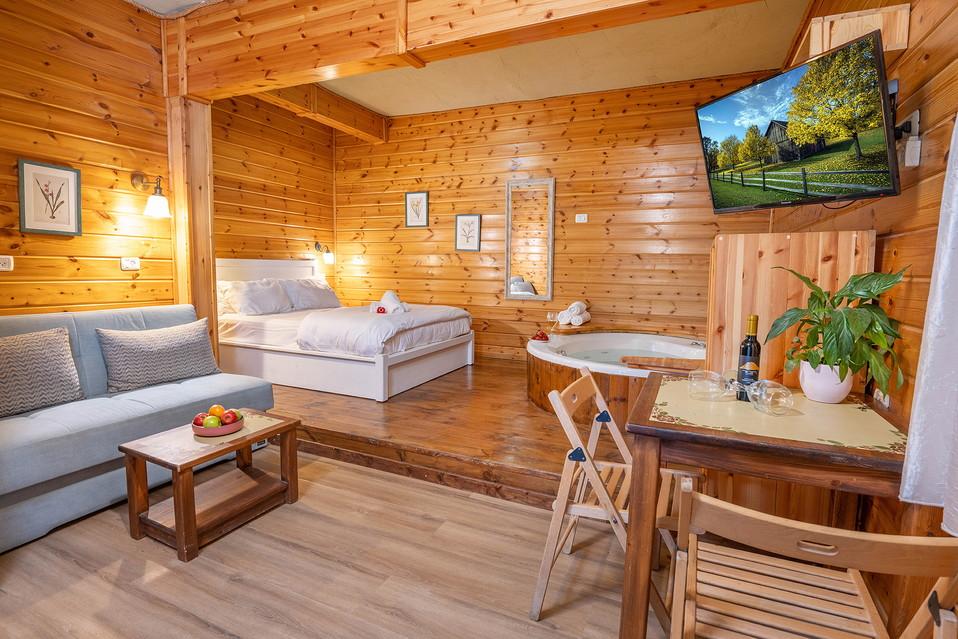 המתחם כולל 4 יחידות אירוח: שתי בקתות זוגיות ושתי סוויטות משפחתיות.