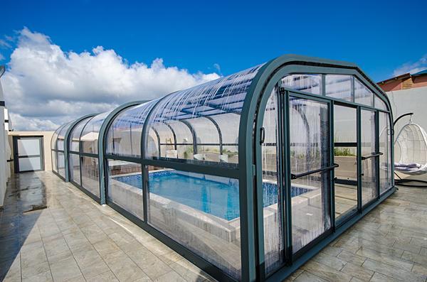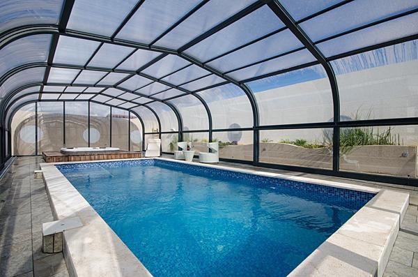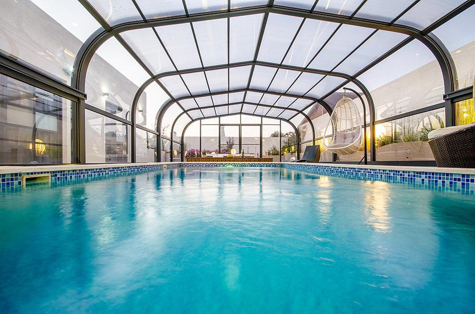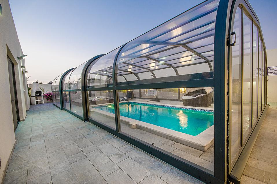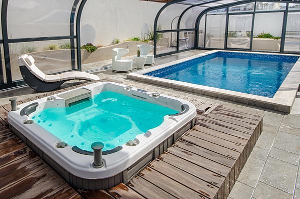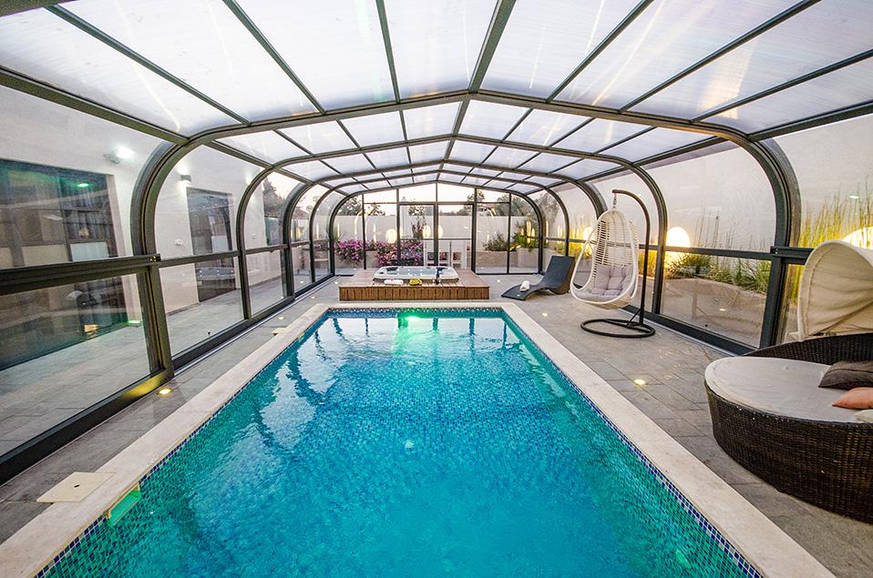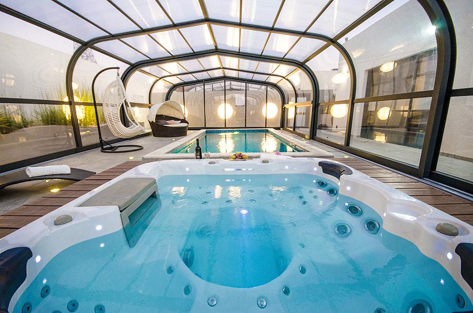 מתחם בריכת השחיה המחוממת וגקוזי ספא תחת קירוי לעונת החורף לכל סוויטה