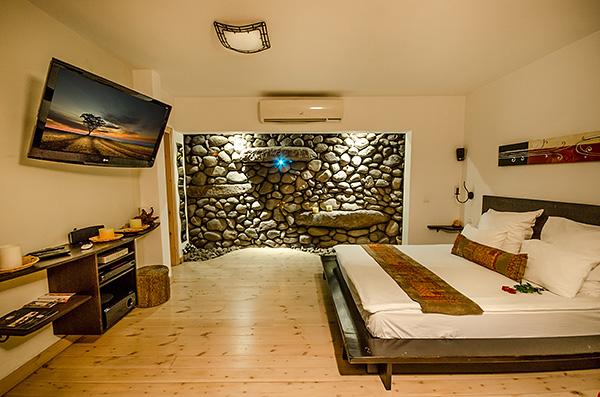 מבניי הסוויטות עוצבו בהשראת המראה הייחודי של סביבת החוץ , השופעת טרסות אבן וסלעיי בזלת. גם בתוך הסוויטות שובצו אבניי הבזלת האקזוטיות - בקיר המבנה, במסגרת הג'קוזי וכבסיס למערכת ישיבה סלונית.
